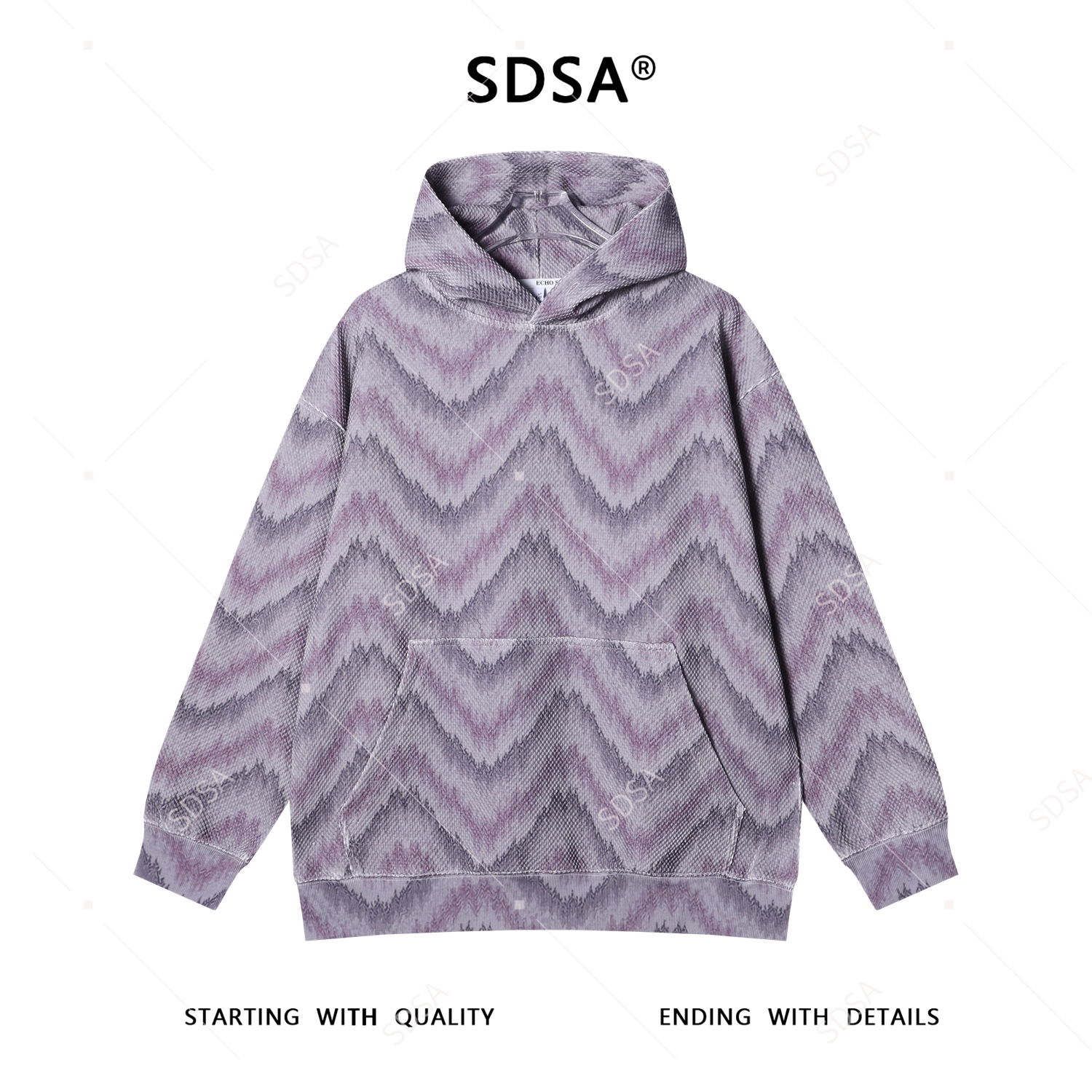 WY1039SDSA男士秋冬新款痞帅男装扎染波浪线设计连帽卫衣百搭套头上衣