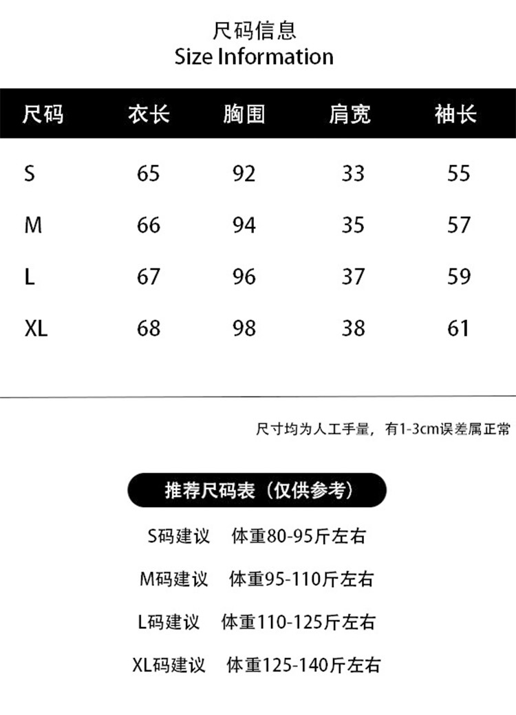 品名:Im Presionismo垫肩西装 规格:S-XL 产地及发货地:四川 发货时间:下单一般48小时内发货(周末、节假日除外) 发货快递:中通快递(暂不支持指定快递) 运费政策:该商品全国部分地区包邮(新疆、西藏需补差运费15元/单,港澳台不发货,请知悉) 售后政策:本品包装配件完整、未拆封、不影响二次销售支持7天无理由退换货(无运费险),请知悉 温馨提醒:因显示器像素差异与拍摄灯光原因,图片与实物颜色可能存在些许色差,具体请以收到实物为准。 喜欢宽松版型的建议可以拍大一码哦~ |