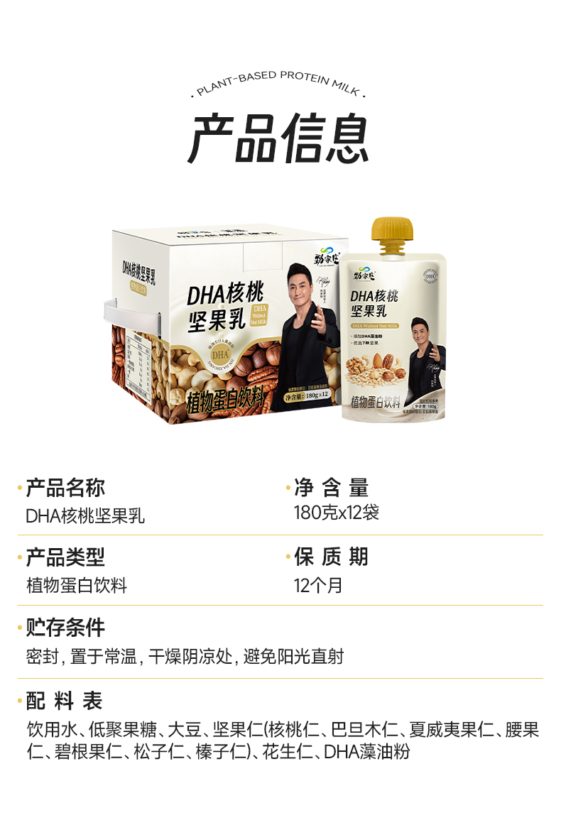 新品上市 DHA核桃坚果乳 180克/袋 12袋/盒