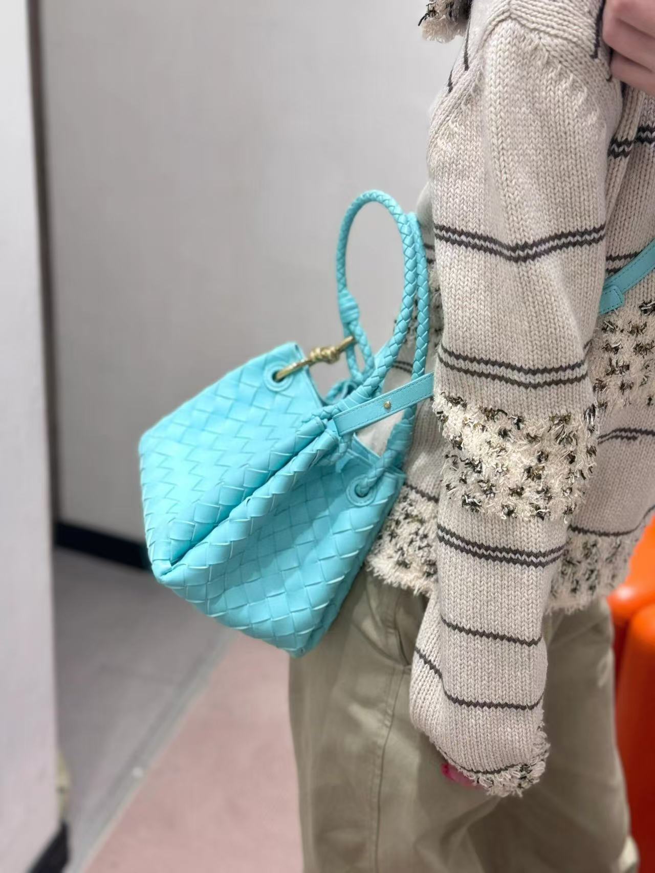 搭配可拆卸斜肩带 内里自带一个mini小包 外观保留BV编织独特的设计 降落伞包是一款未见到实物就心动的包包 小小金色knot点缀充满了简约高级感 满足你不同场合需求