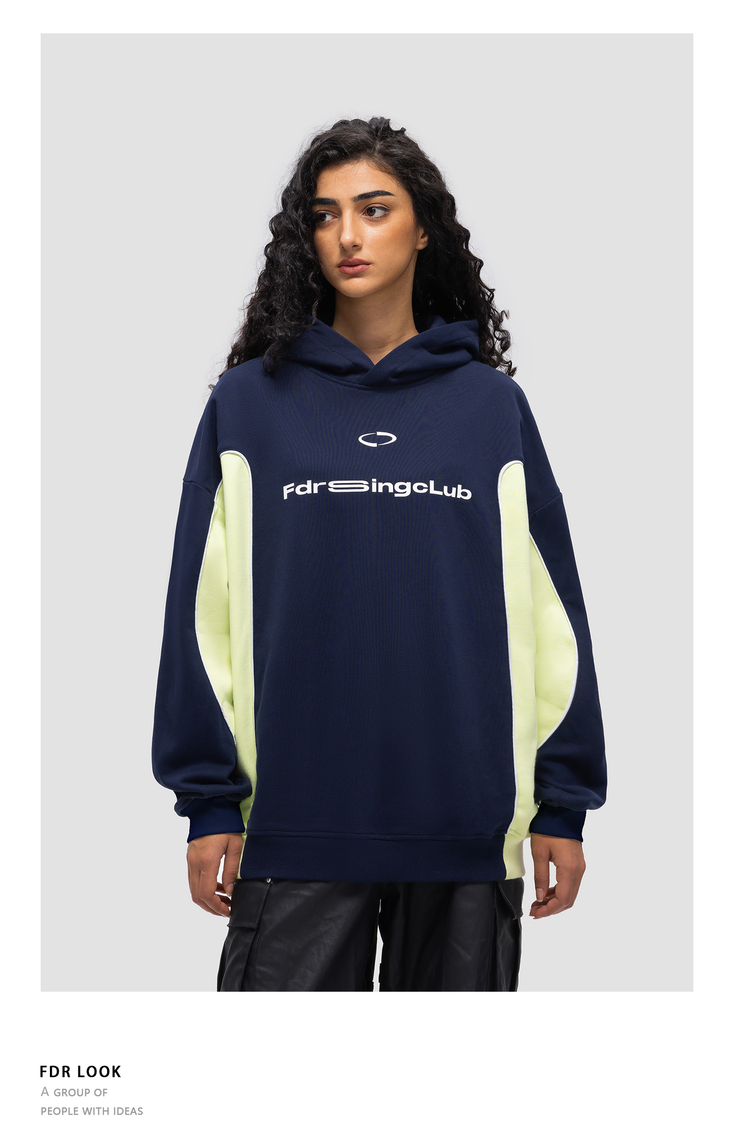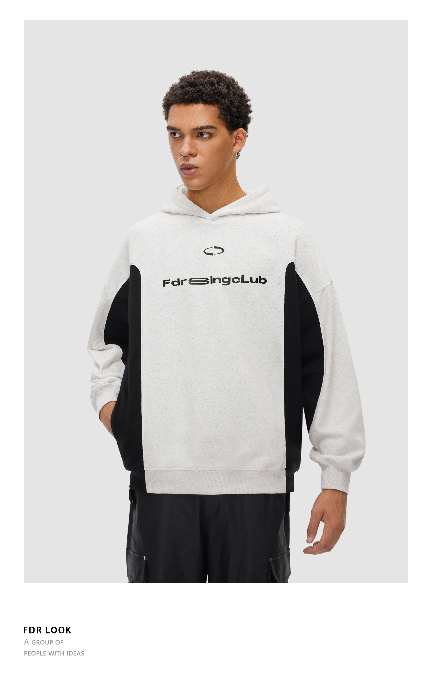FDR 国潮侧拼撞色印花连帽卫衣男女春秋季潮牌高街情侣装宽松上衣
