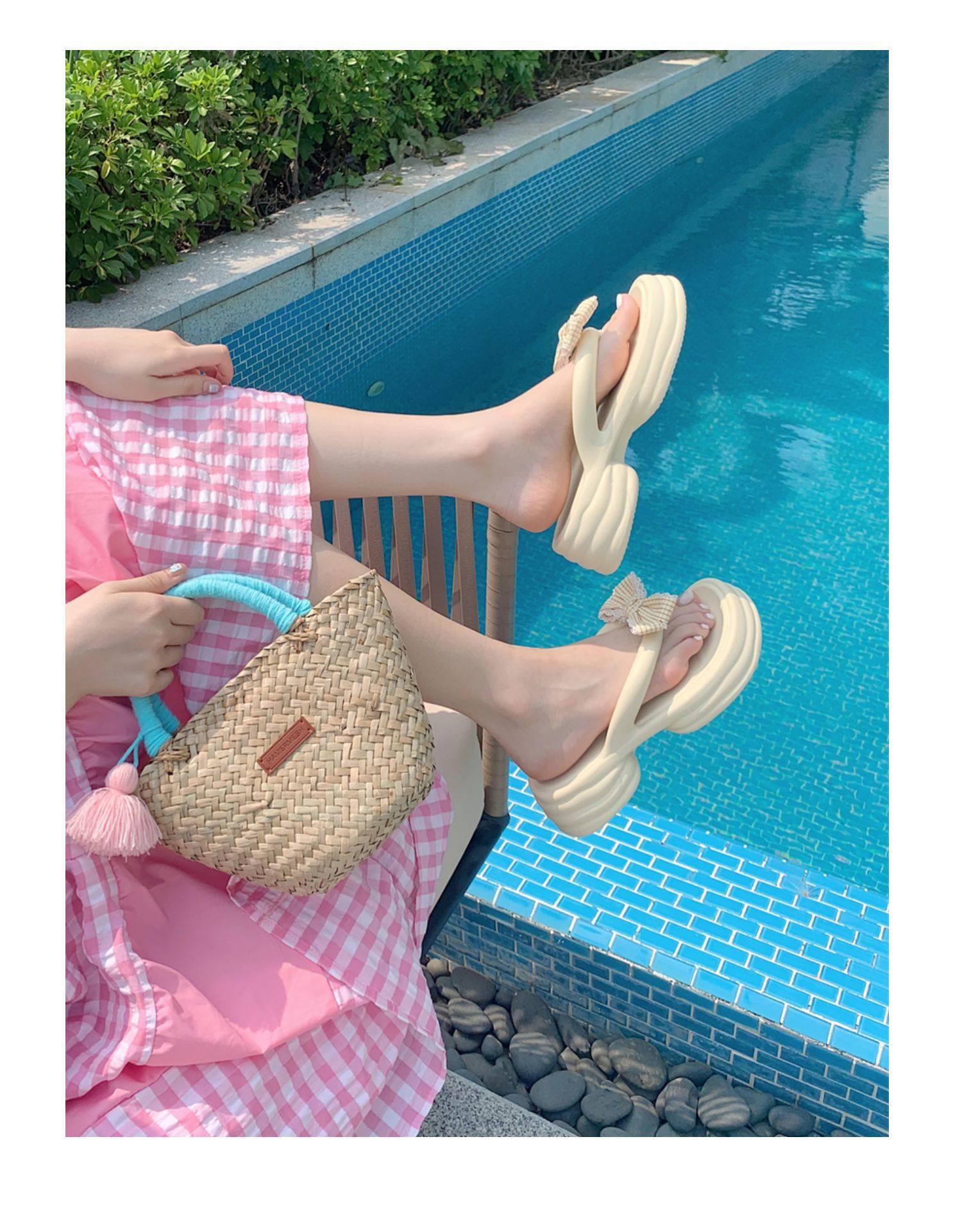 【敲好看!蝴蝶结人字拖】网红新款可爱蝴蝶结人字拖学生休闲外穿沙滩夹脚凉拖鞋女夏季。ry