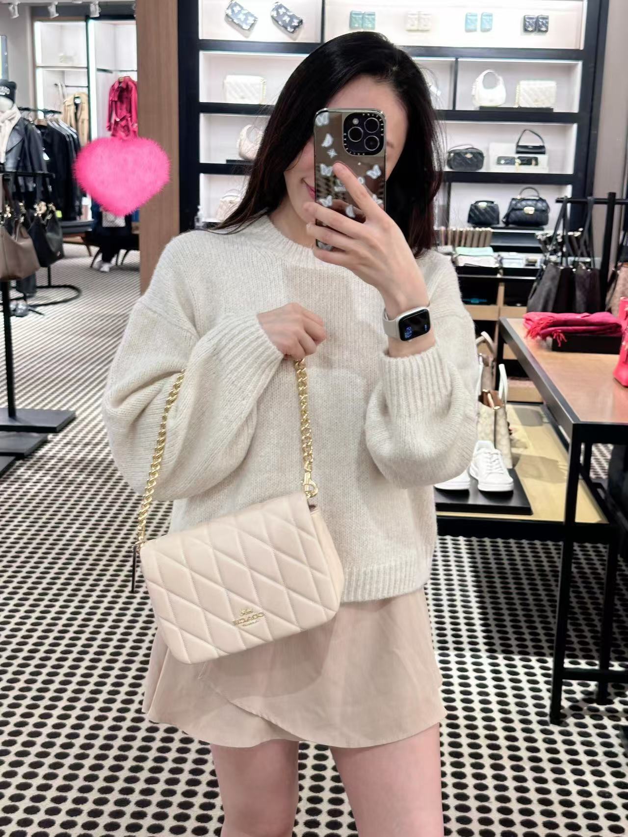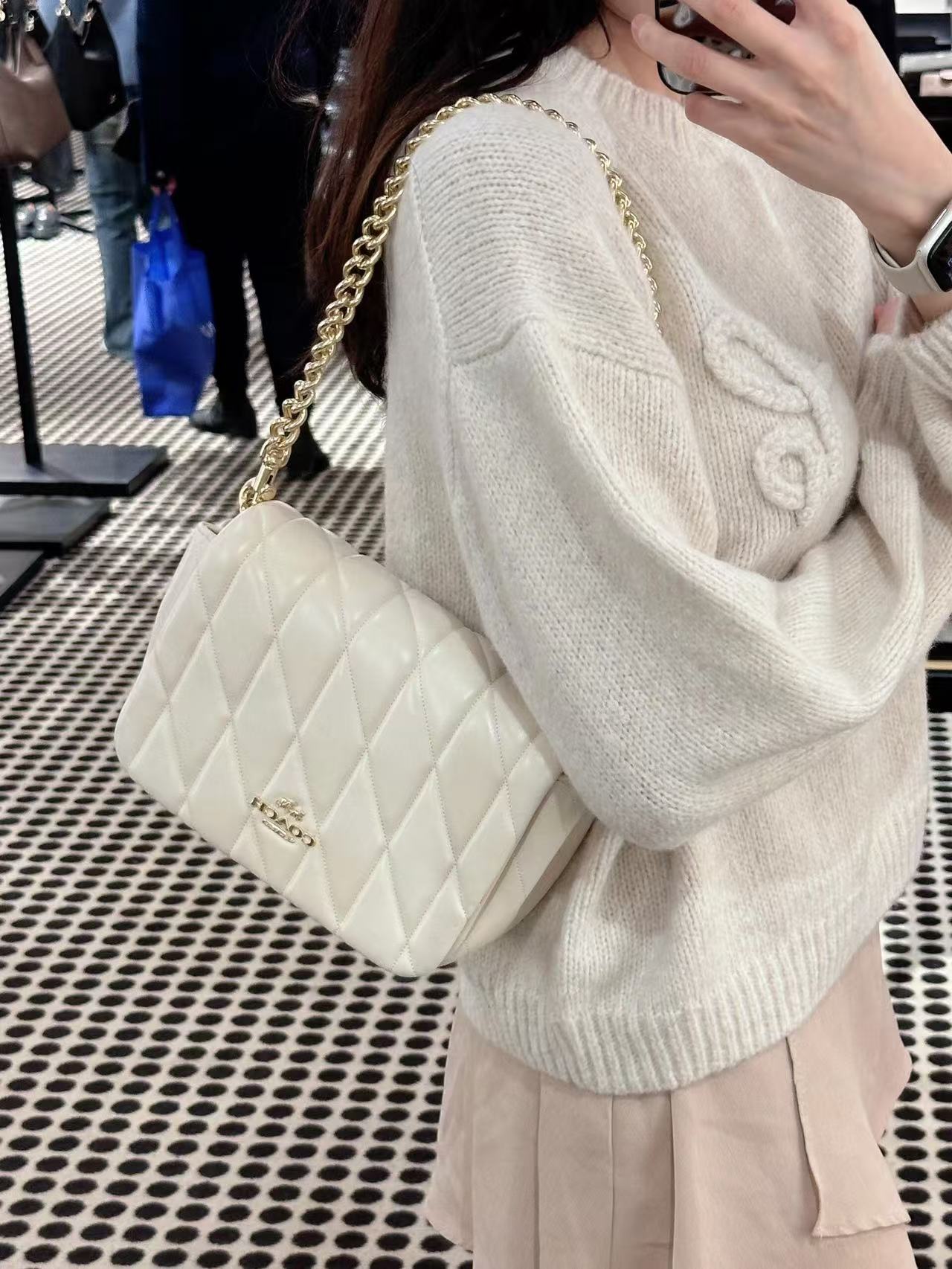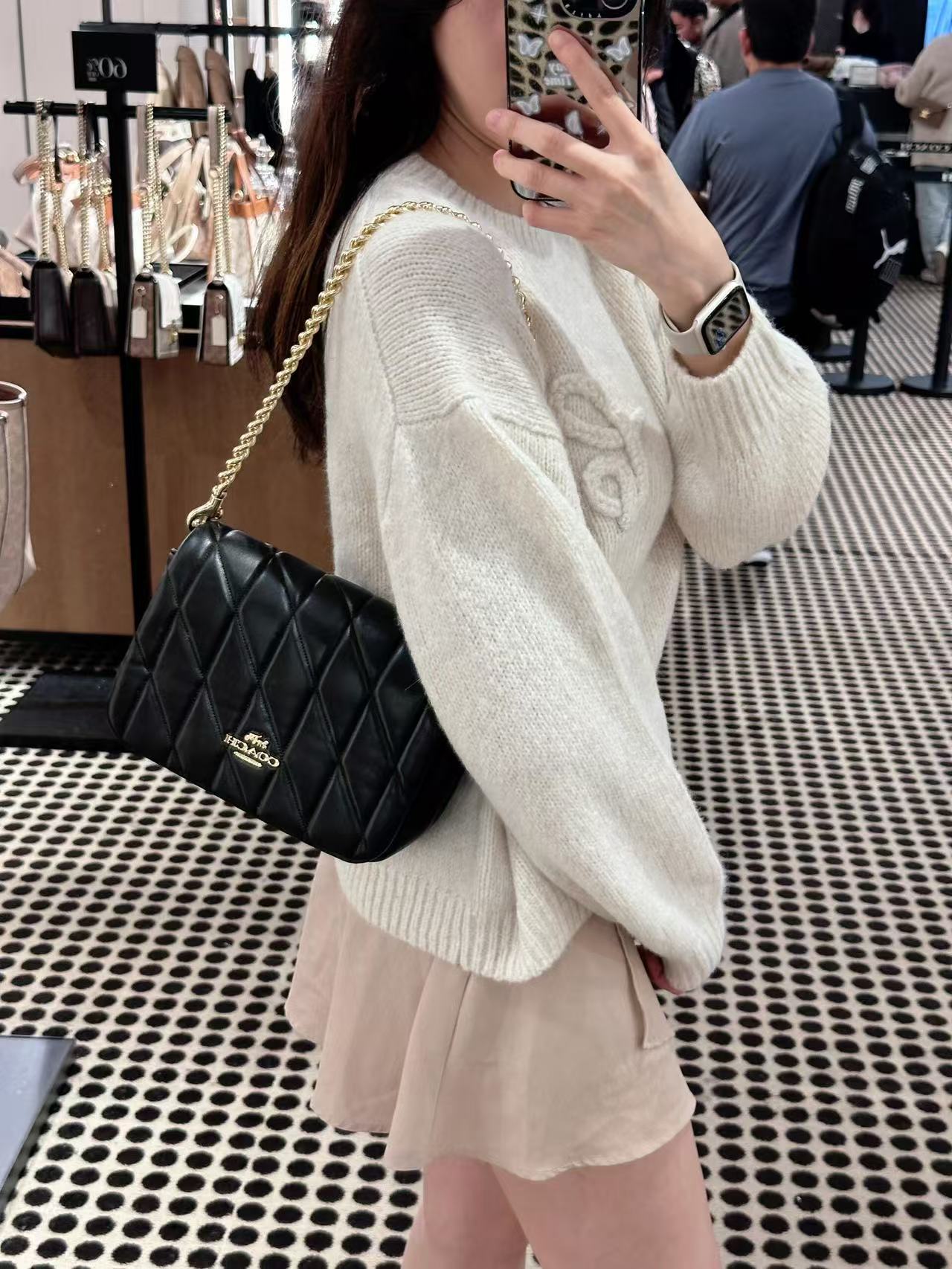 最近几年,Coach的包包设计越发有自己的风格。尤其是今天这款Quinn Bag 链条包!真的美到犯规!手感超级软糯!一上手就爱了~ Miumiu少女风,谁背谁减龄,太适合春夏搭配啦!