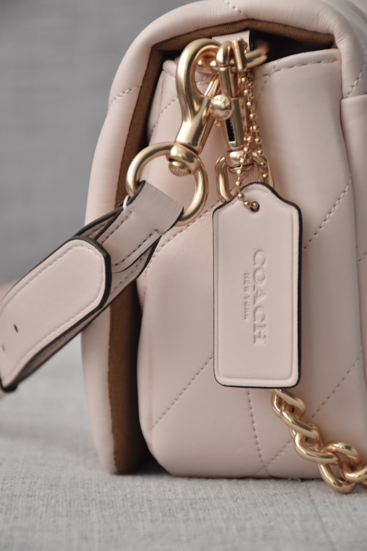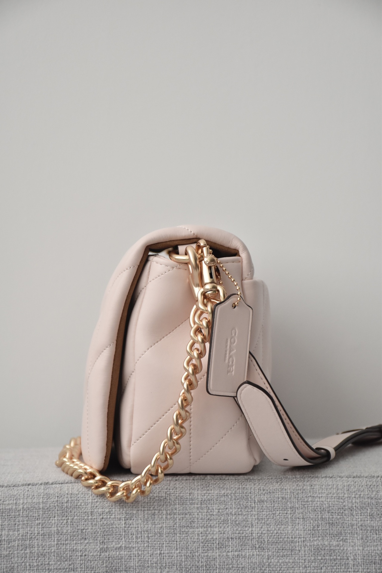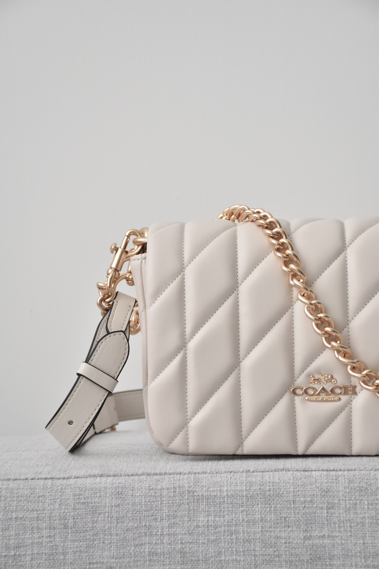 最近几年,Coach的包包设计越发有自己的风格。尤其是今天这款Quinn Bag 链条包!真的美到犯规!手感超级软糯!一上手就爱了~ Miumiu少女风,谁背谁减龄,太适合春夏搭配啦!