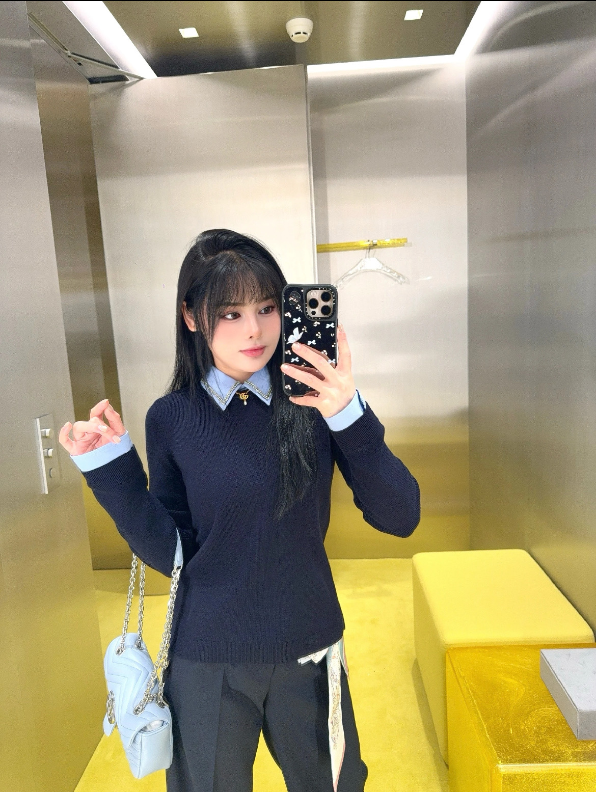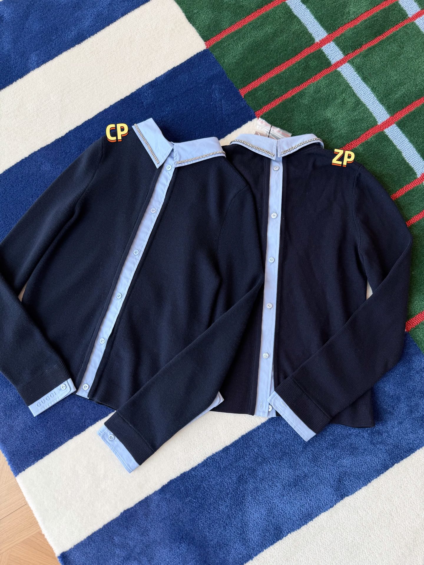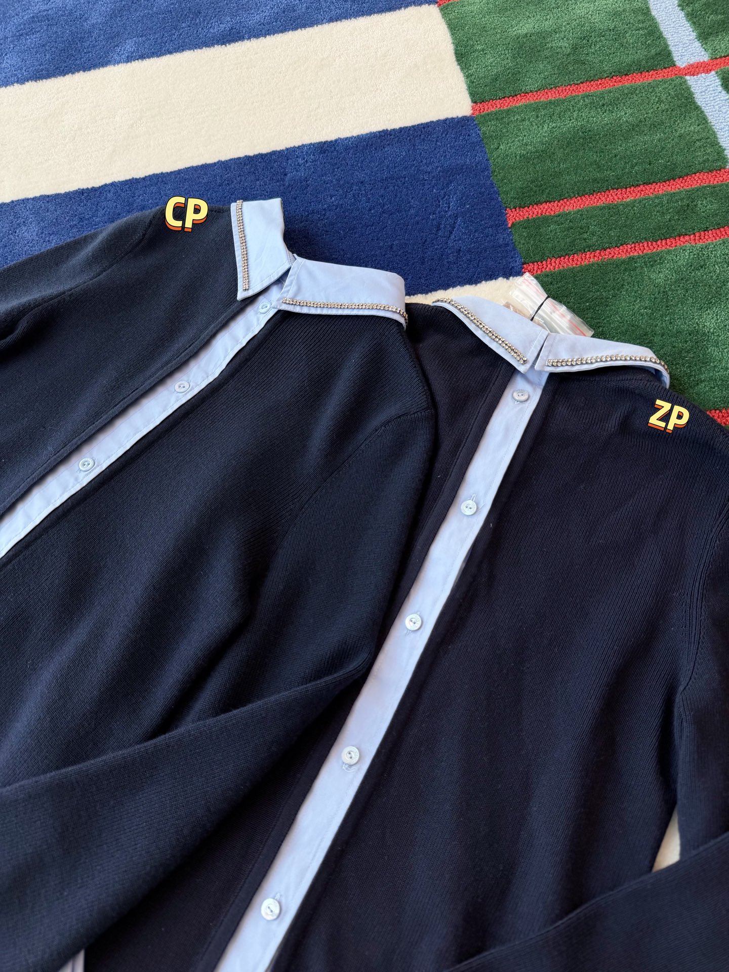 最新款新品🆕假两件羊毛针织衫, 层次感天花板👍🏻这件设计独特,羊毛衫与衬衫细节于一体,衣领处匠心缀饰水晶刺绣,➕ 袖口压纹标识,超重工☑️ 整体海军蓝的颜色高级又日常,一眼就让人爱上了😍休闲而精致的风格萦绕于此款针织衫中💫随身版型,质感真的绝了🉑 极简风格真的很出彩👍🏻超高级,特别精致,绝对是你的心头好💖不仅温暖,而且时髦指数爆表💫别犹豫,赶紧入手吧‼️码数SML
