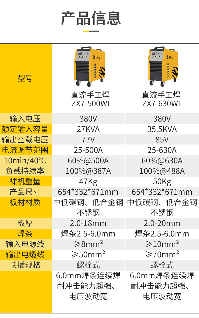 上海沪工ZX7-500WI电焊机380v重工业级逆变直流两用碳弧气刨不锈钢焊机6.0mm焊条连续焊