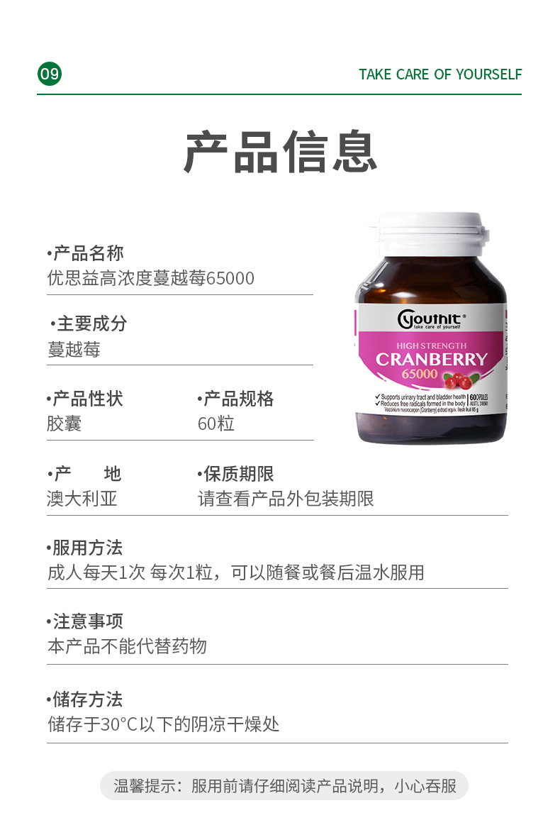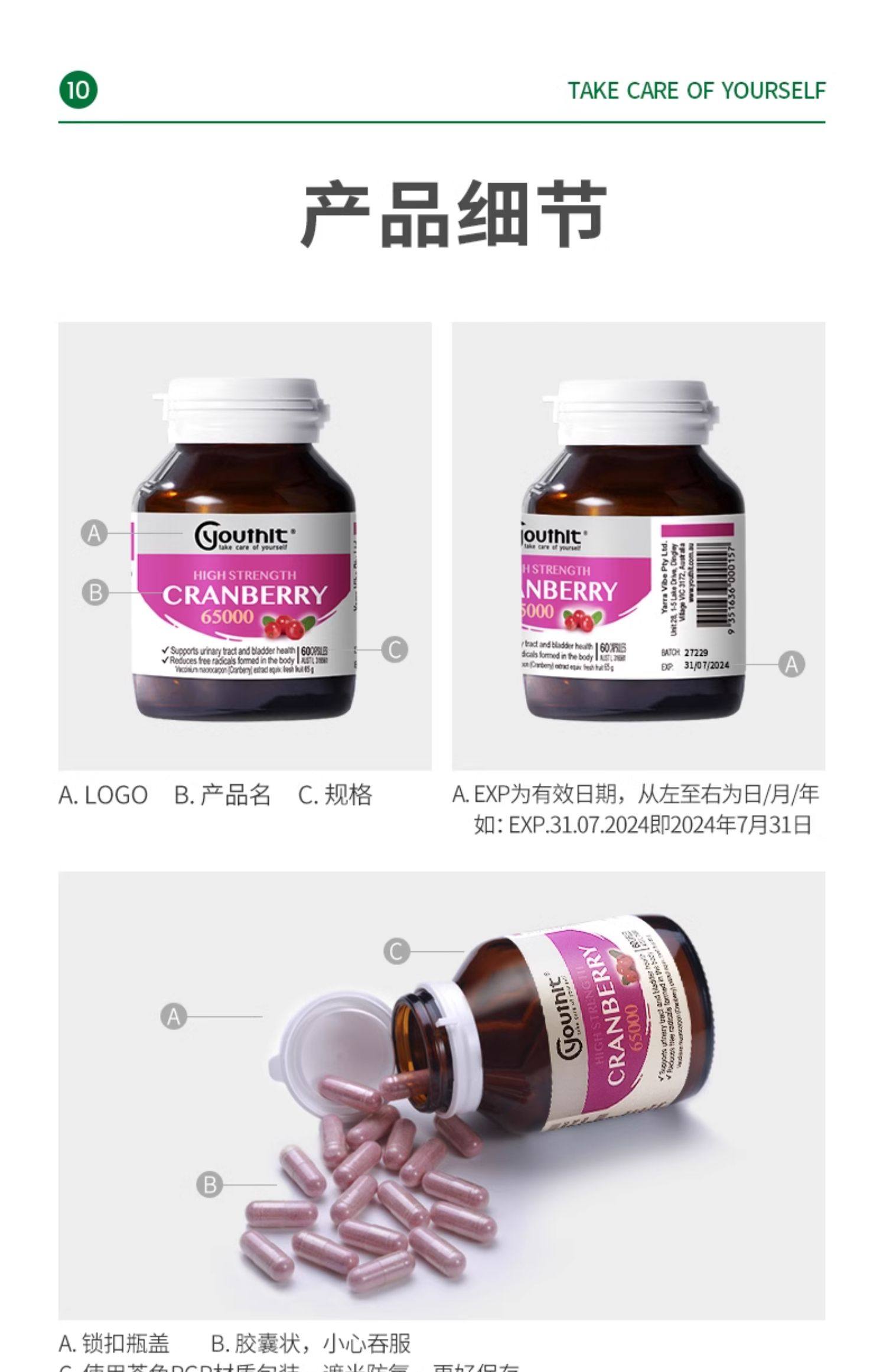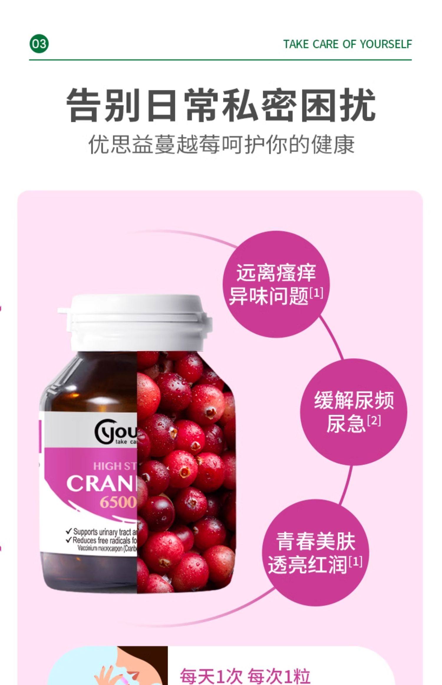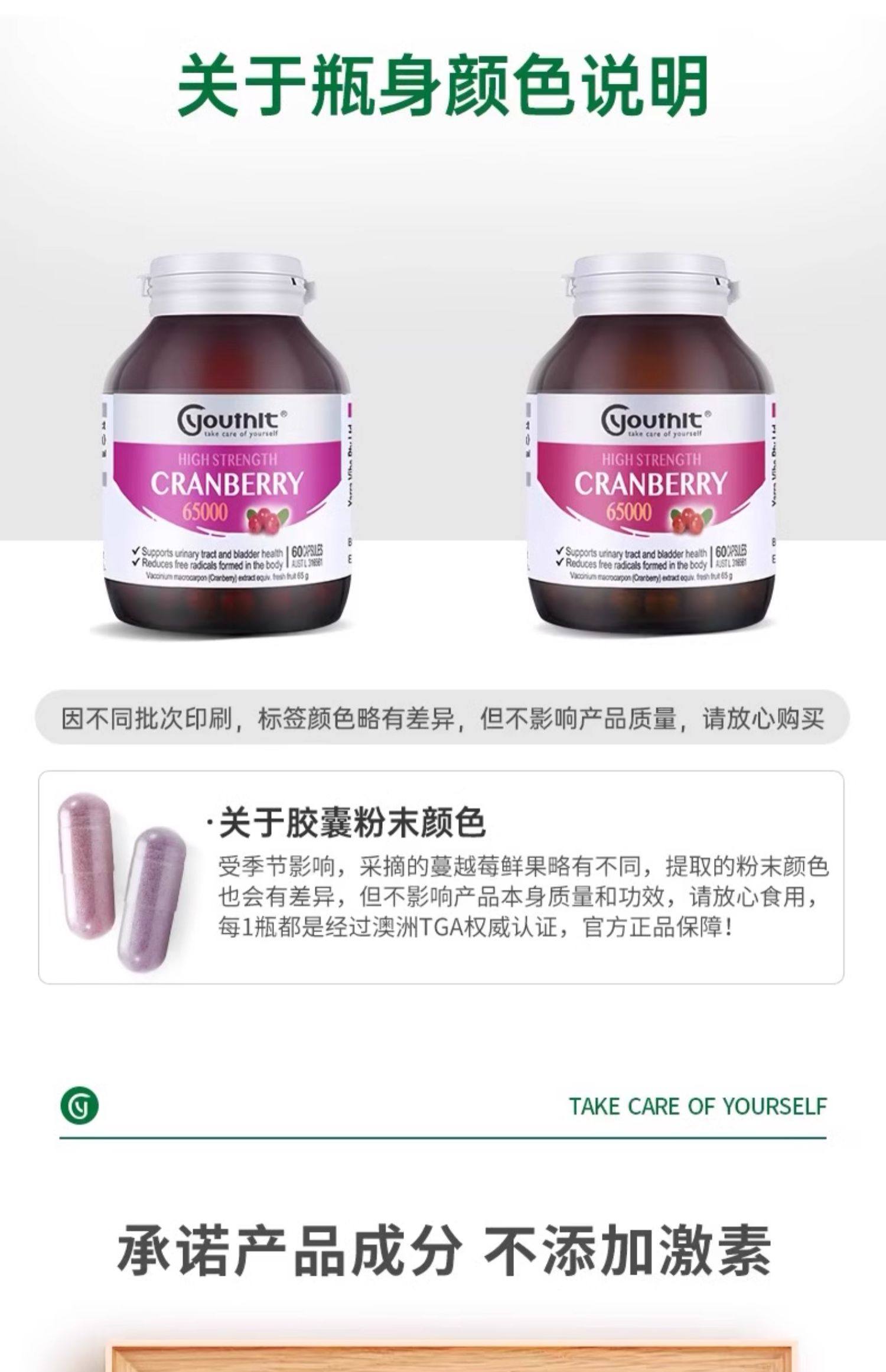 澳洲进口Youthit优思益高浓度蔓越莓胶囊呵护女性花园健康 60粒