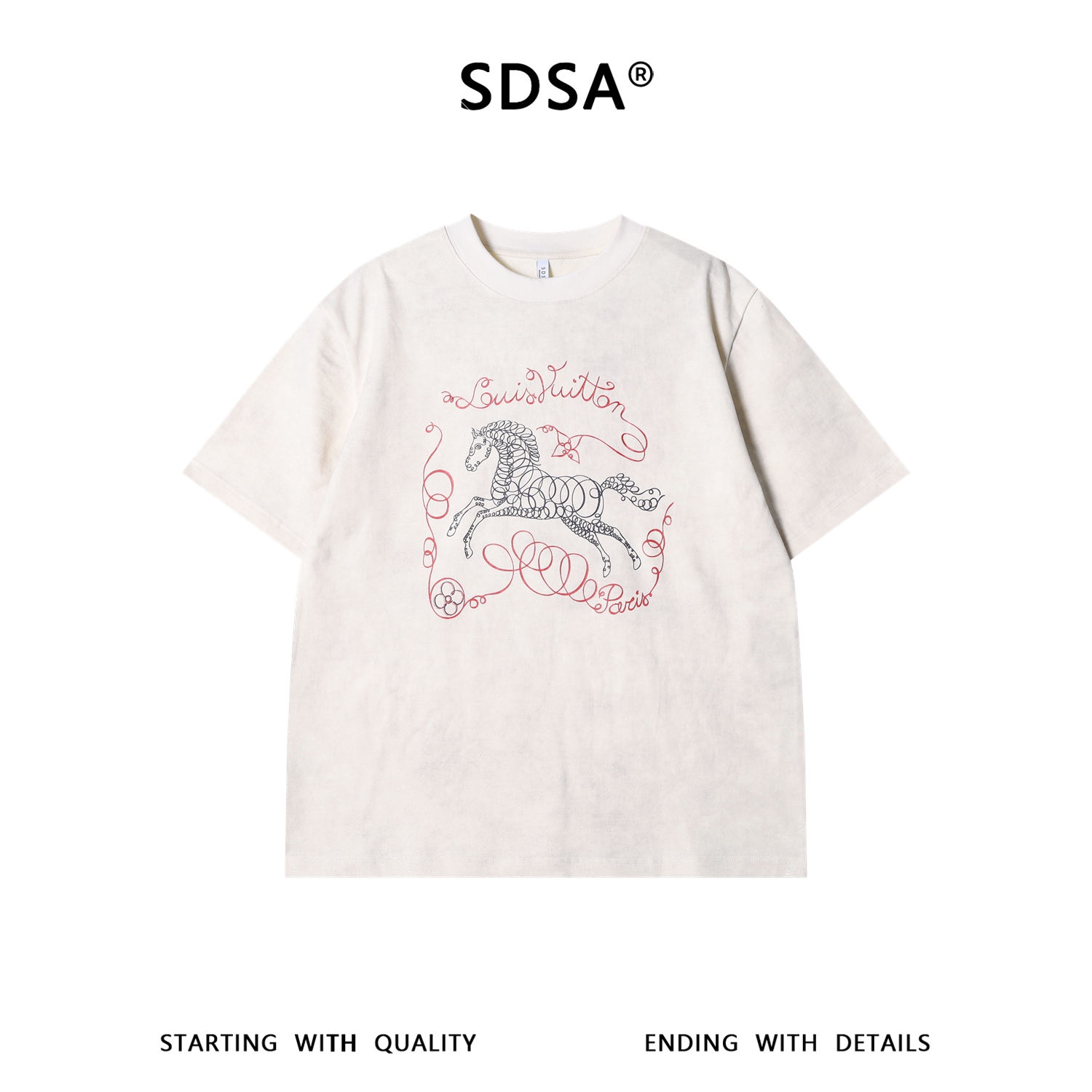 SDSA男装2026新款轻奢潮牌扎染满天星小马印花设计圆领短袖T恤