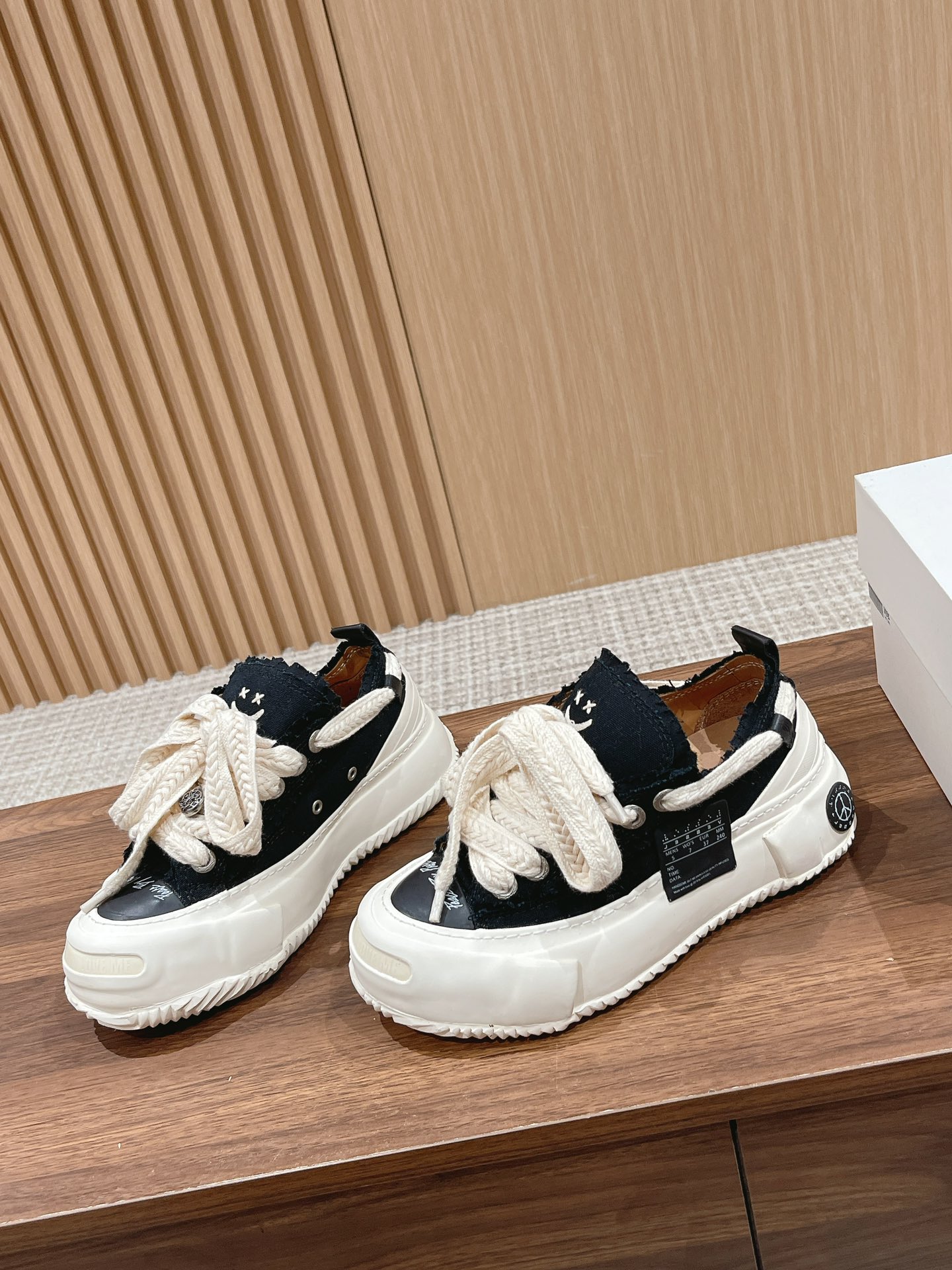 莞产|代购级吴建豪 xVESSEL SMILENCE 棉花糖#隐藏款低帮可替换开口笑厚底休闲帆布鞋? 鞋面水洗帆布,内里牛皮~开模定制组合大底…………解构风格 笑脸刺绣 大别针配件 鞋头感光字母 细节满满 上脚无敌好看 增高还显腿细