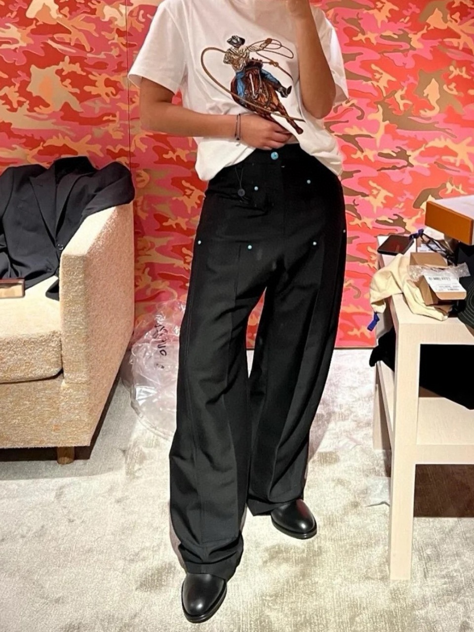 驴家 羊毛晕染绿松石扣长裤(JN)