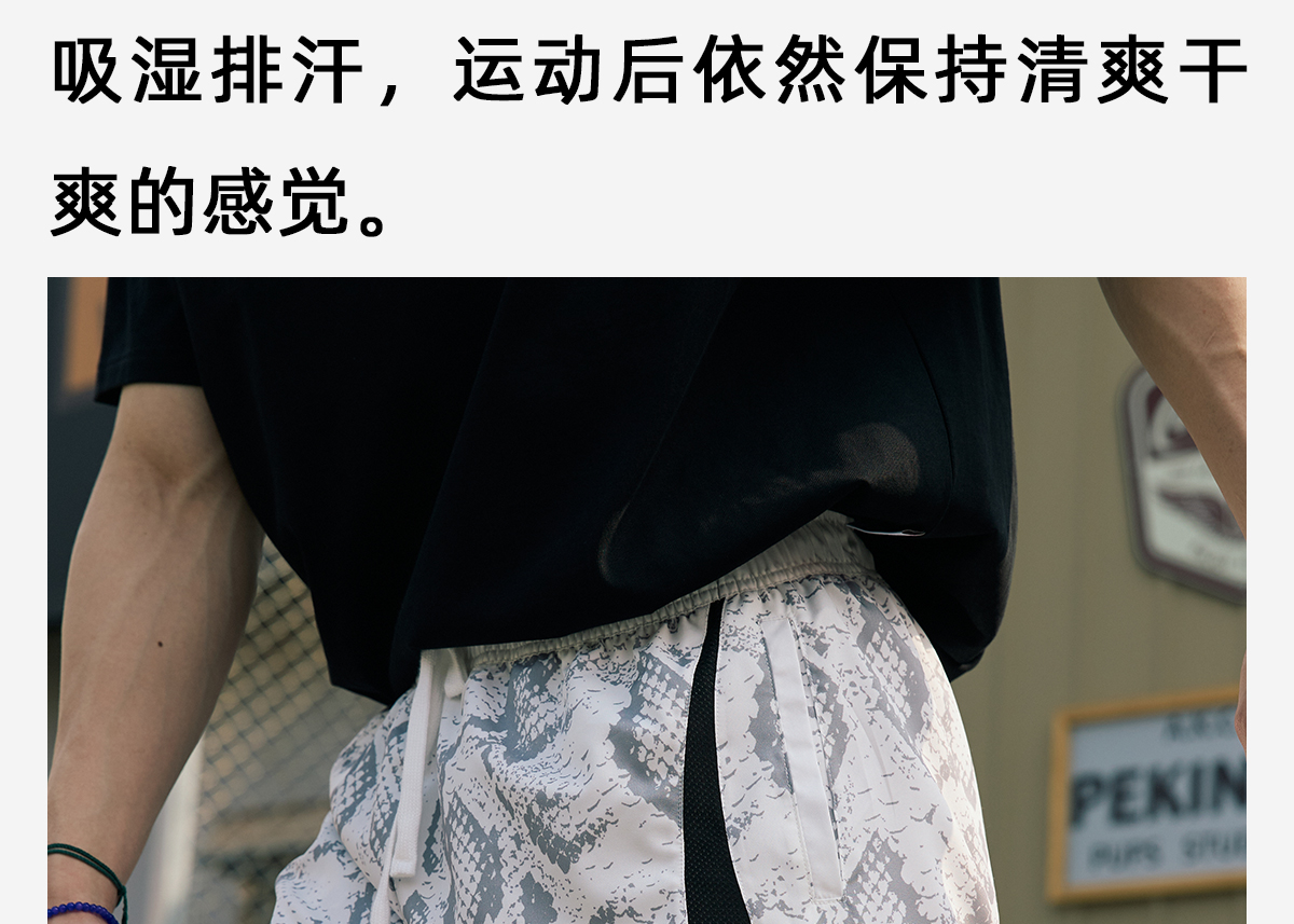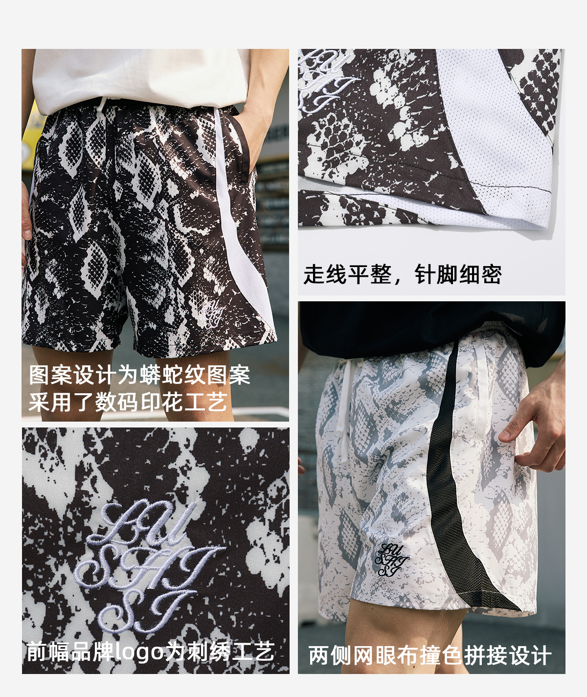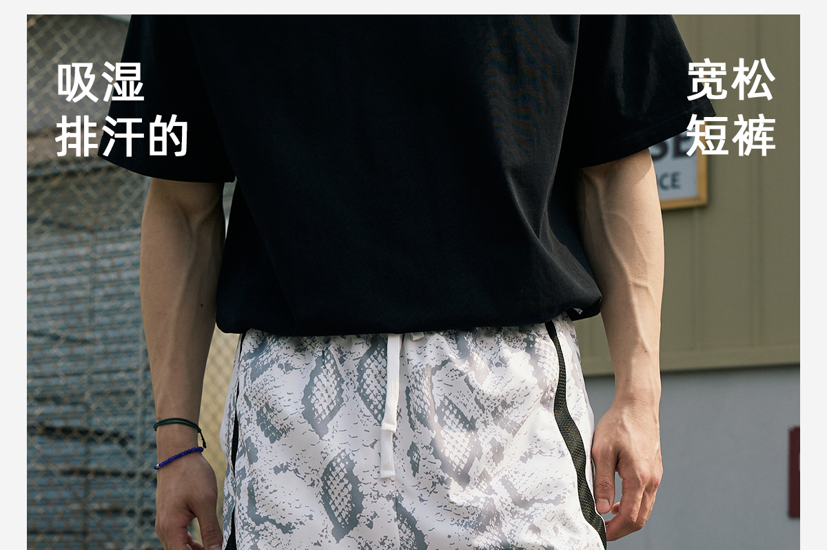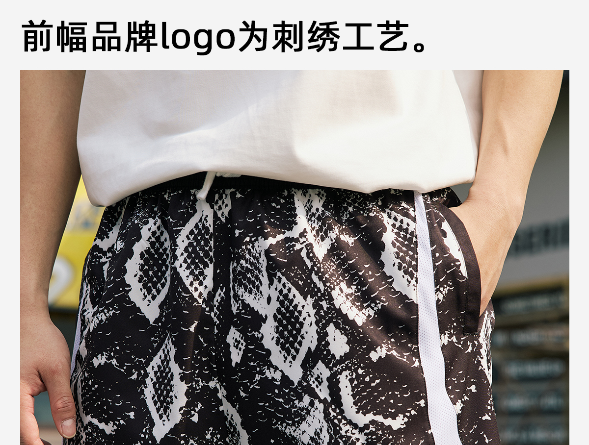 LUSHISI路南主题蛇纹印花设计四面弹短裤吸湿排汗运动篮球裤透气
