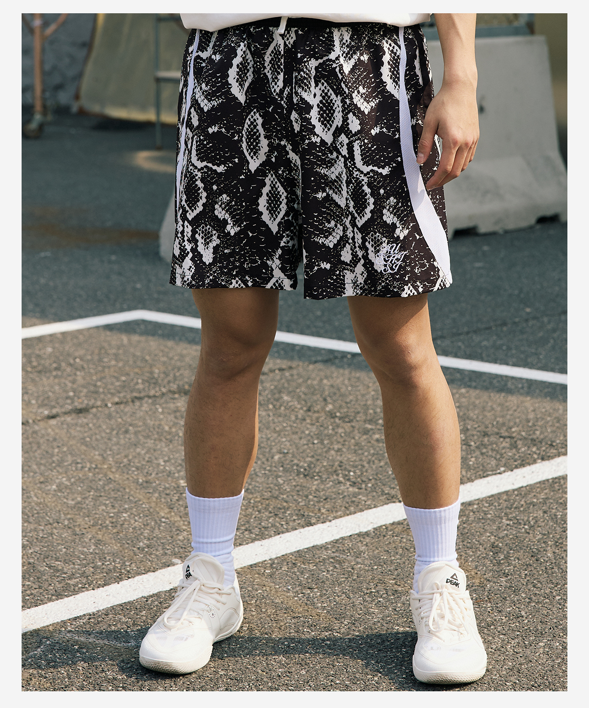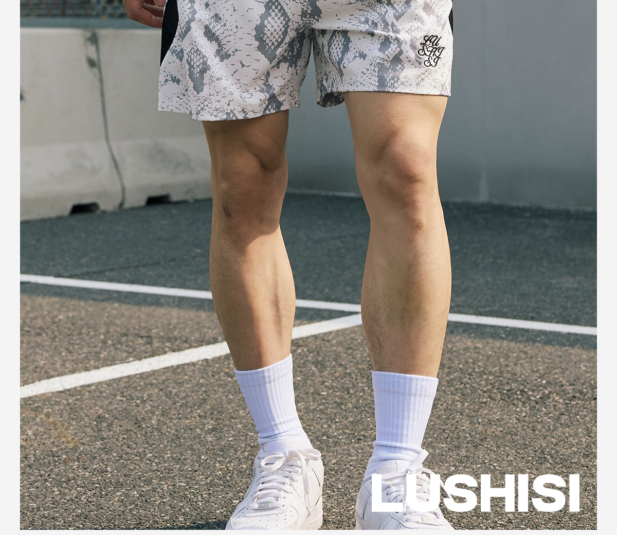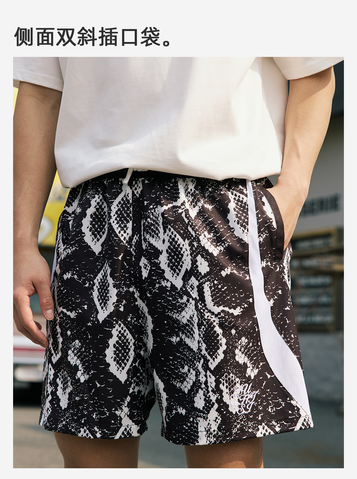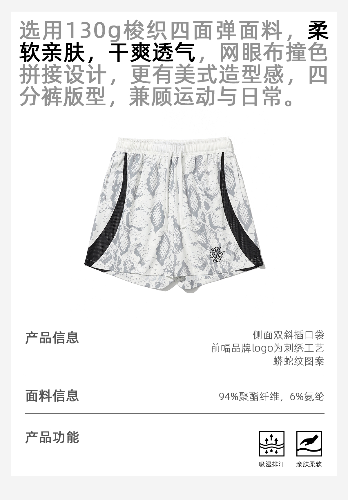 LUSHISI路南主题蛇纹印花设计四面弹短裤吸湿排汗运动篮球裤透气