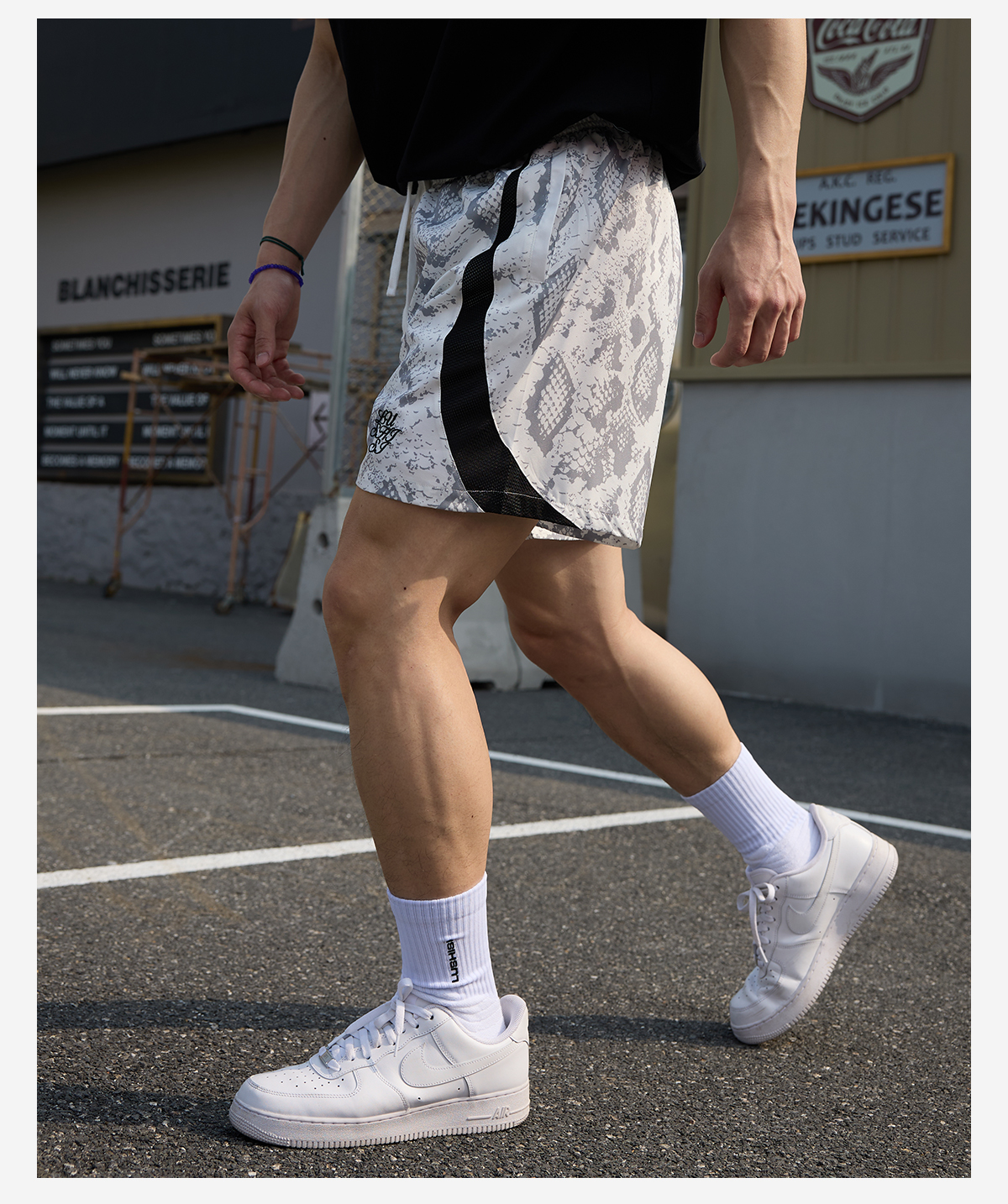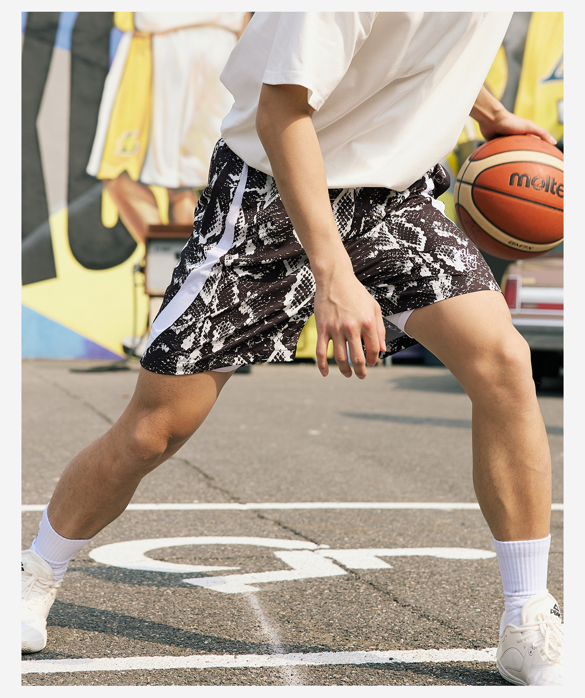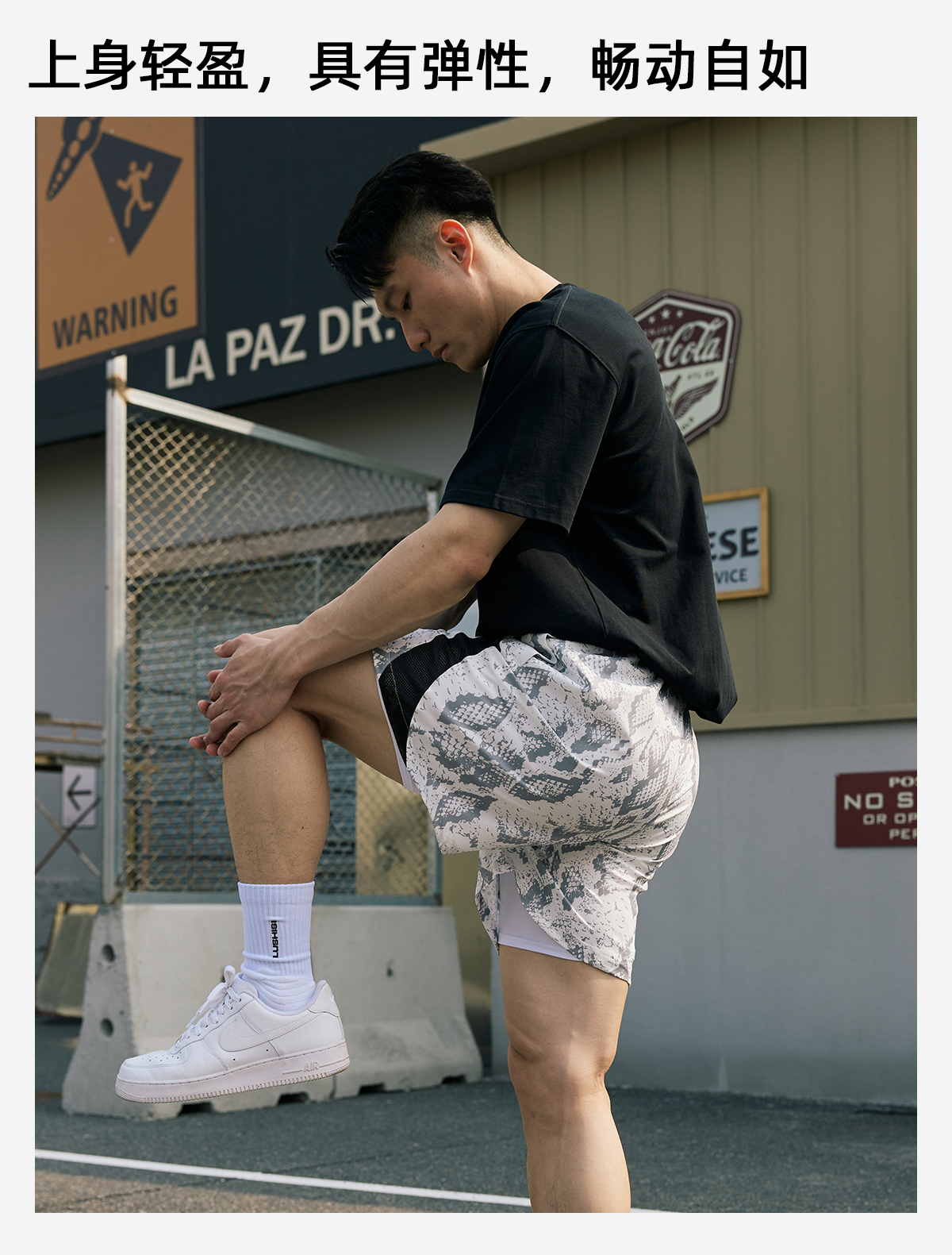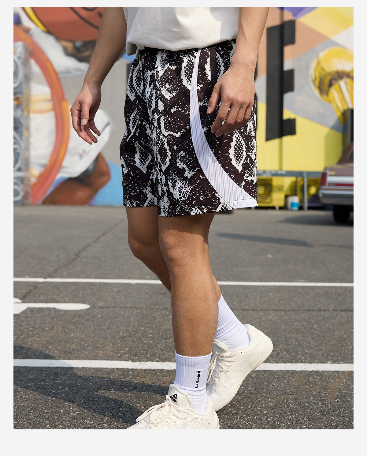 LUSHISI路南主题蛇纹印花设计四面弹短裤吸湿排汗运动篮球裤透气