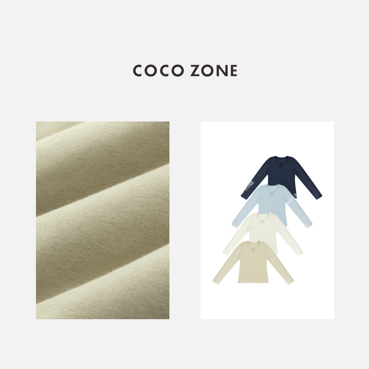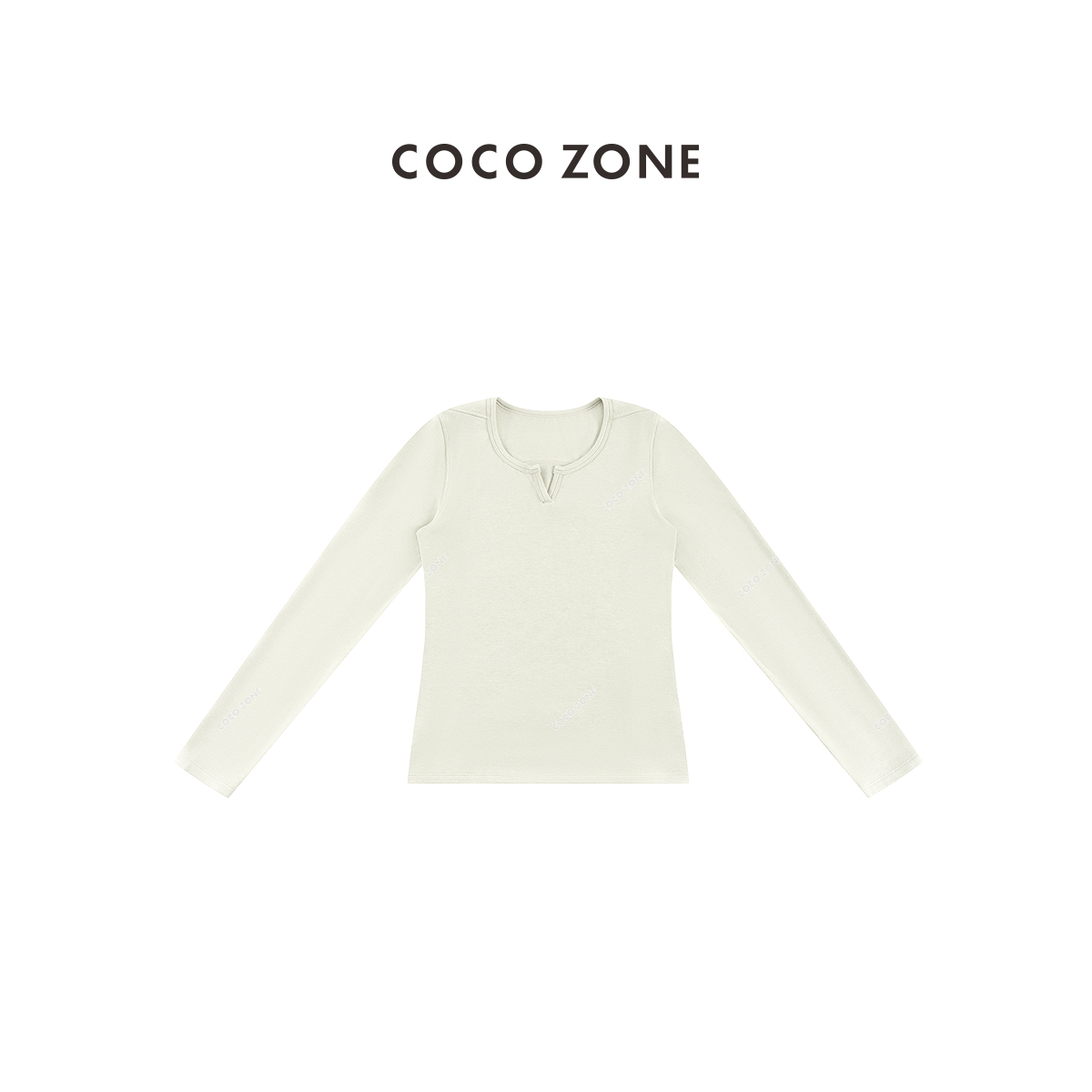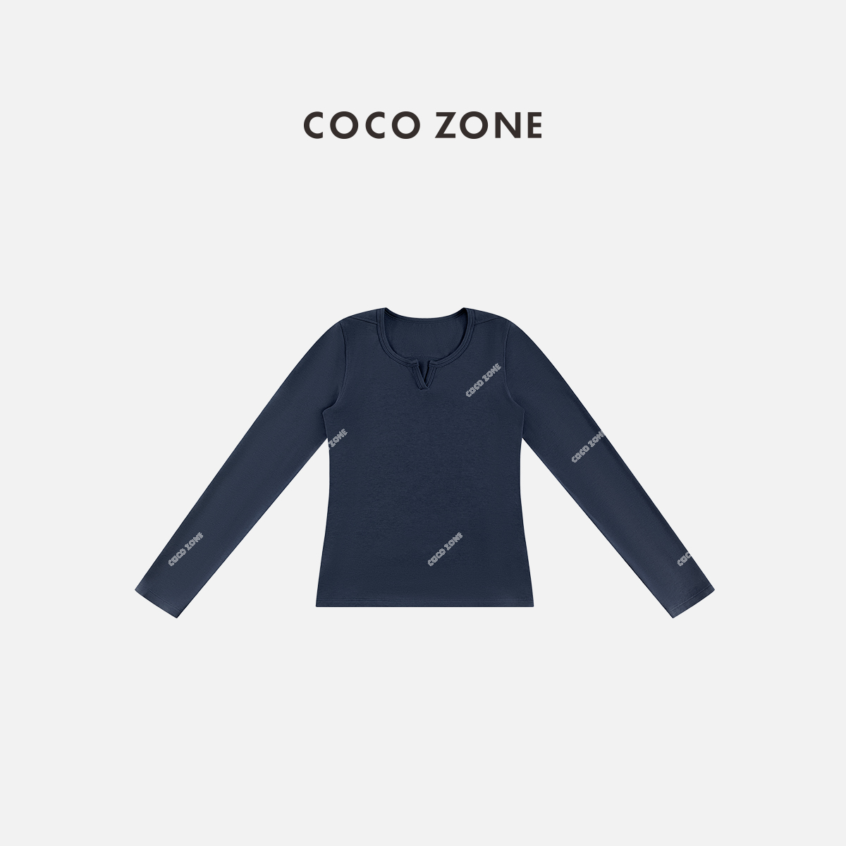 COCO ZONE 冬季加绒打底衫休闲小V领长袖T恤CC1D2814