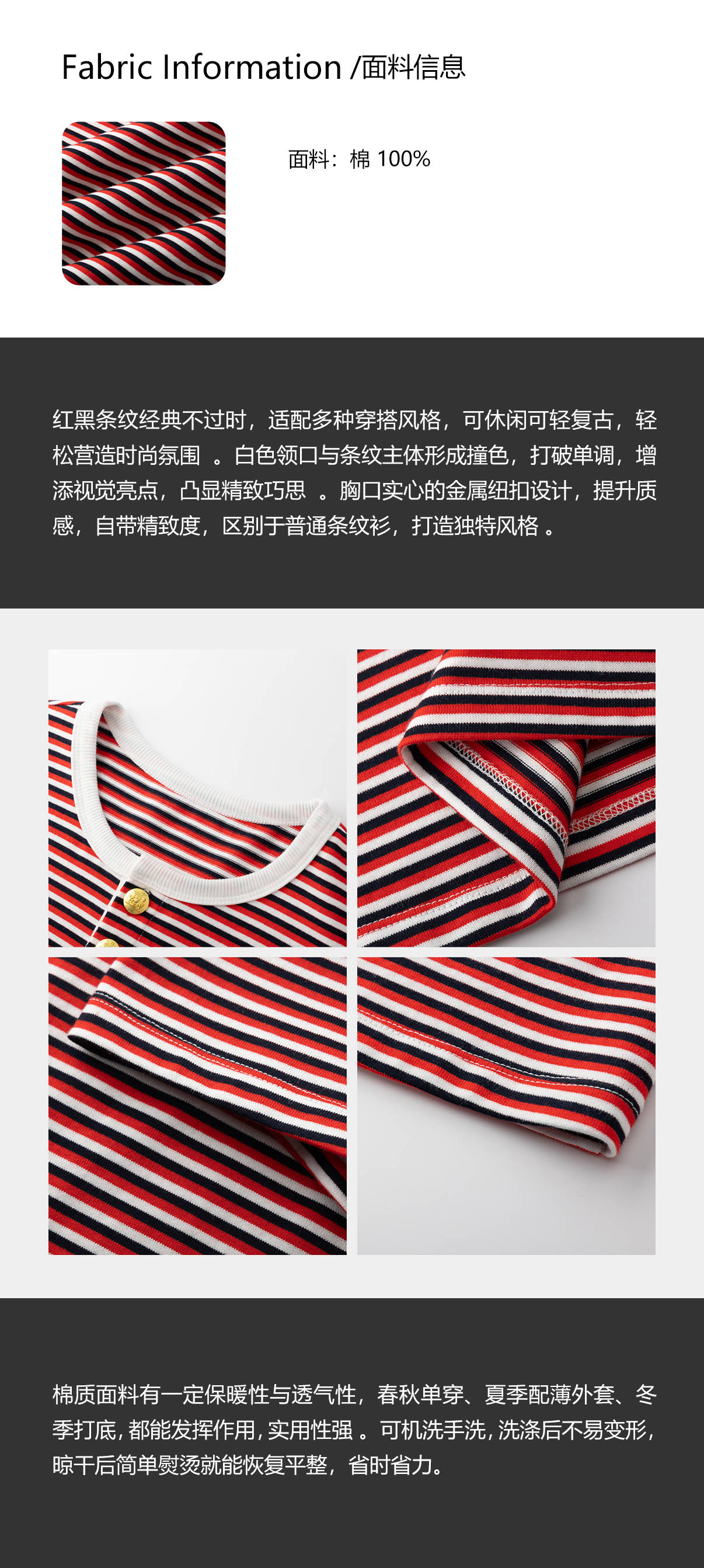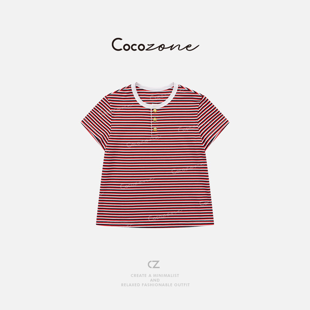 COCO ZONE 刘一一“凯旋T”100棉圆领撞色条纹短袖T恤CD1A1024