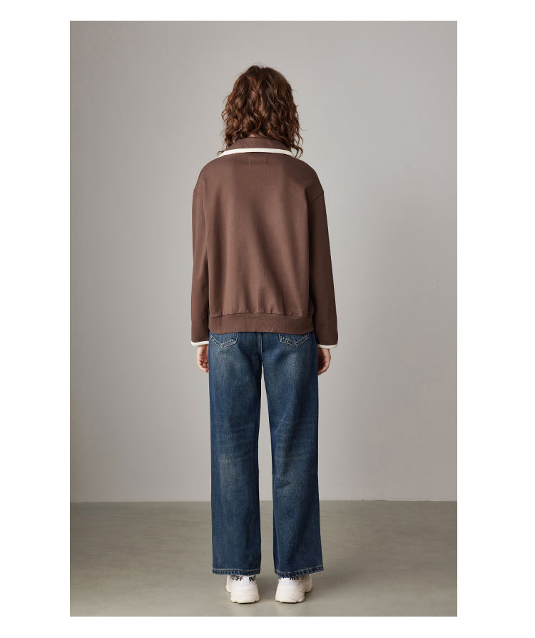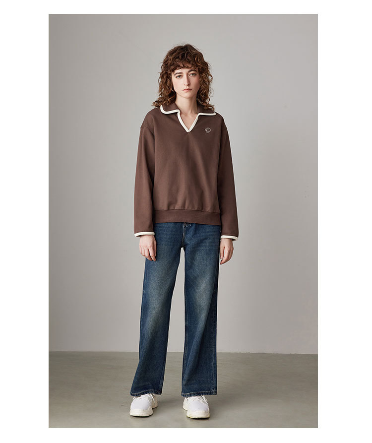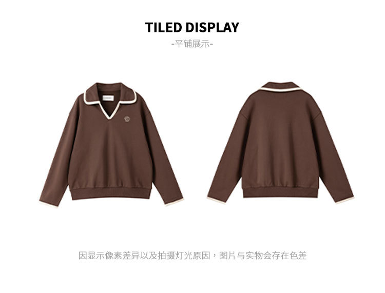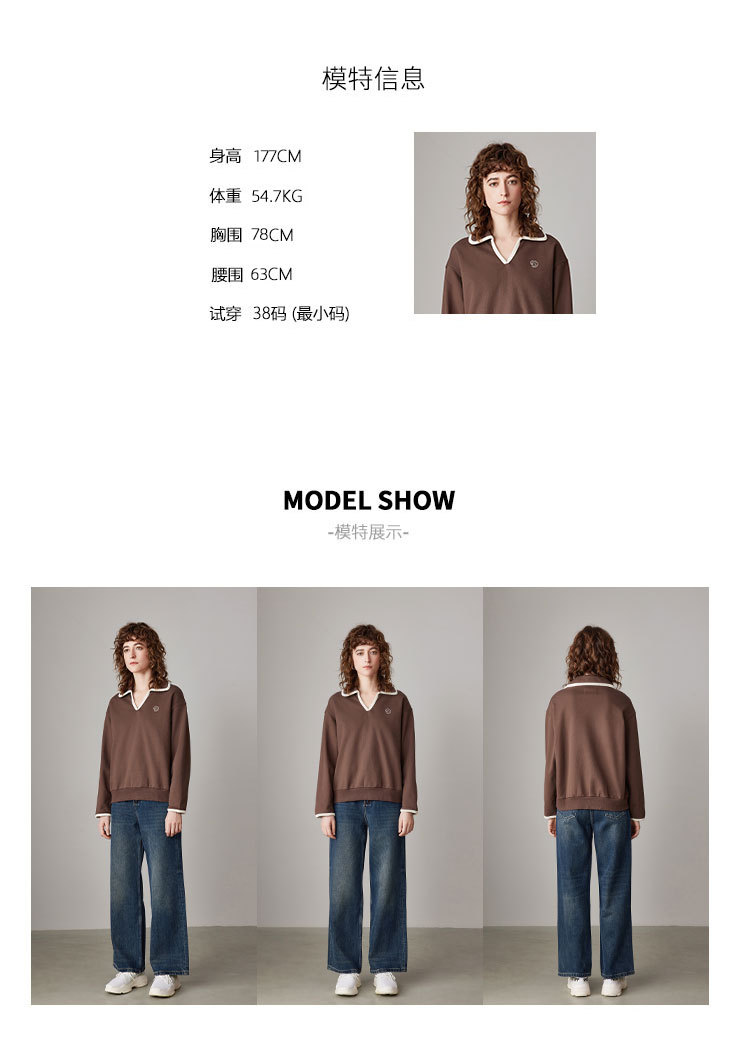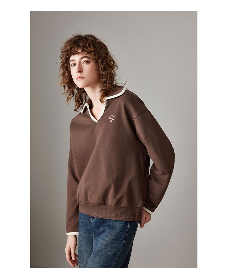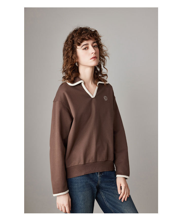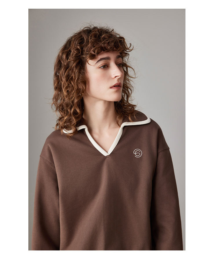 COCO ZONE 刘一一 轻奢美式V领卫衣女初秋宽松纯色小众感显瘦上衣23C19193