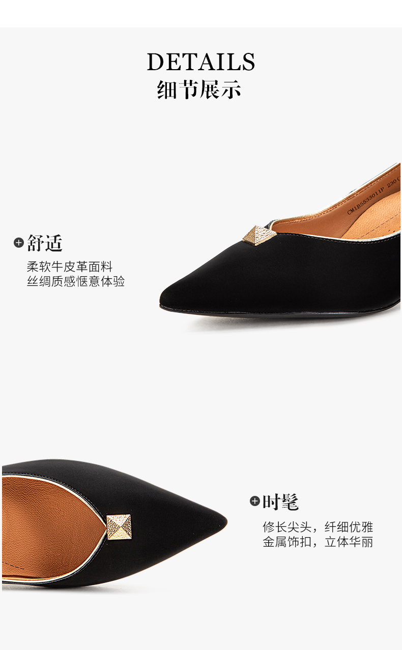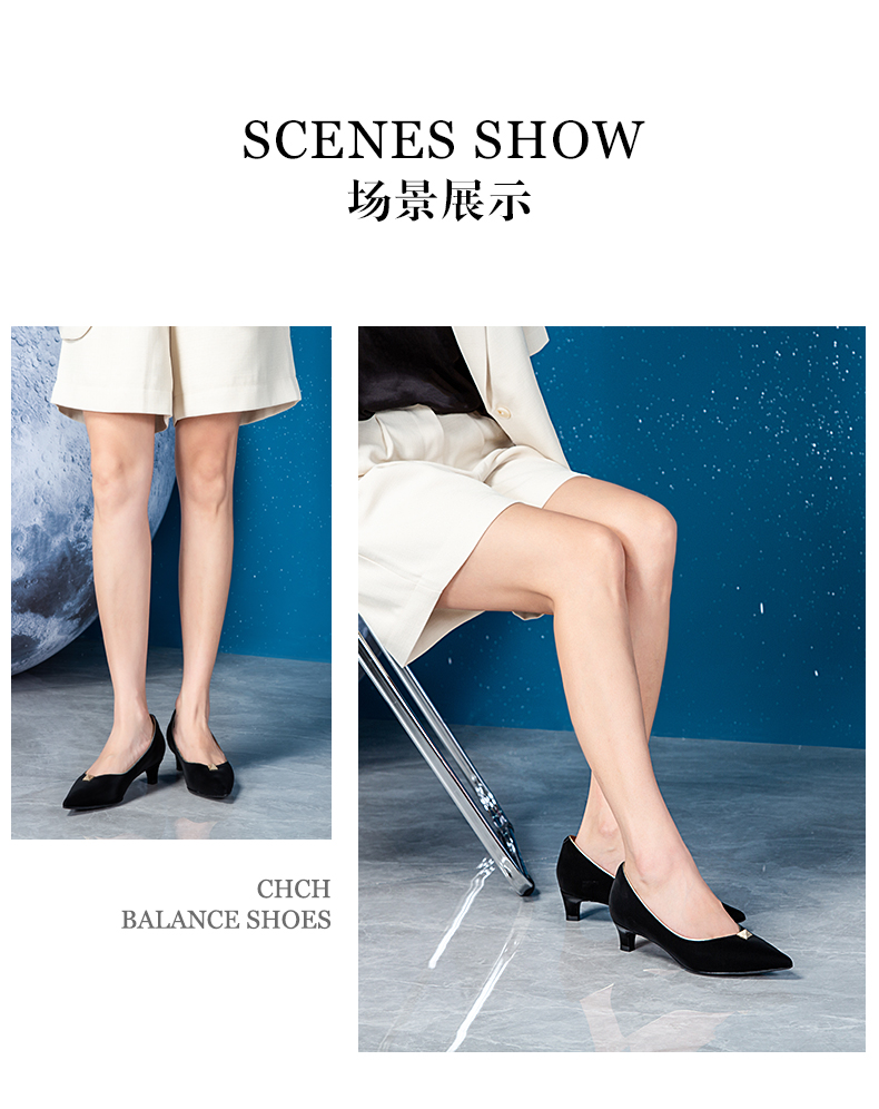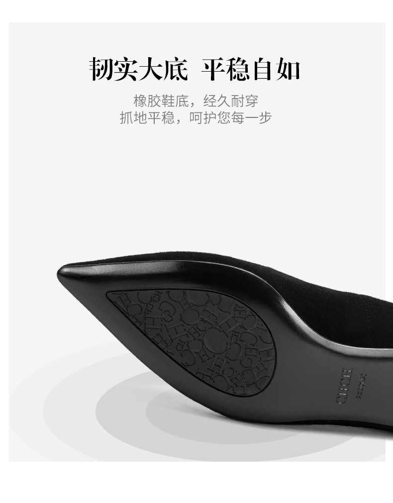 CHCH祈祈牛皮粗跟浅口女士单鞋通勤优雅高级感CM1B5533