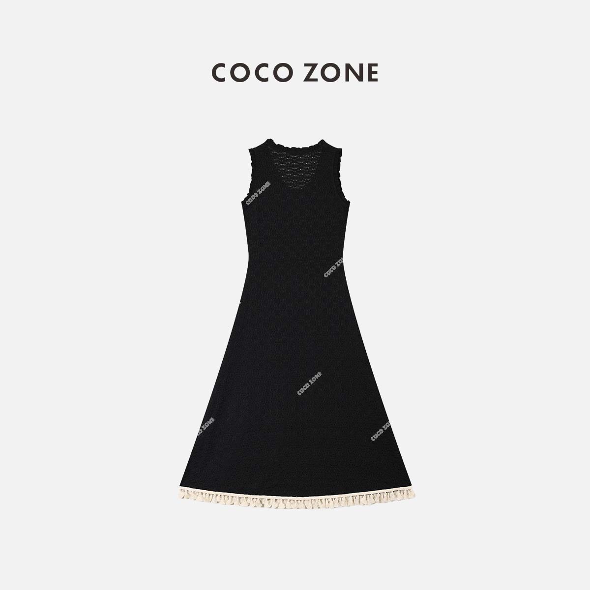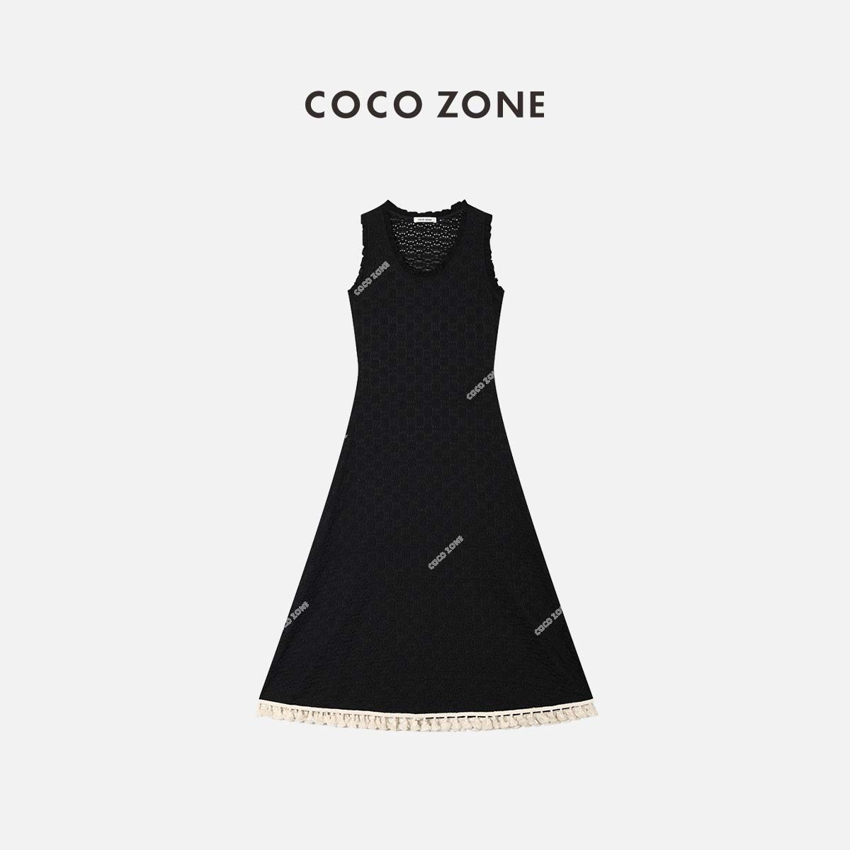 COCO ZONE 【2件套】设计感U领花纹流苏花边裙+内搭 23C18733