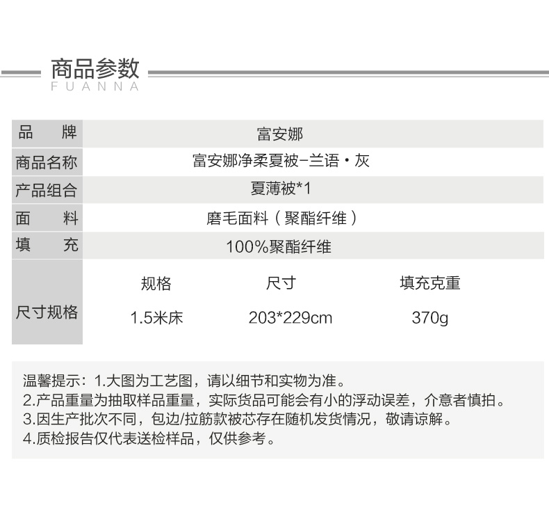 富安娜净柔夏被\兰语·灰\203*229cm\370g