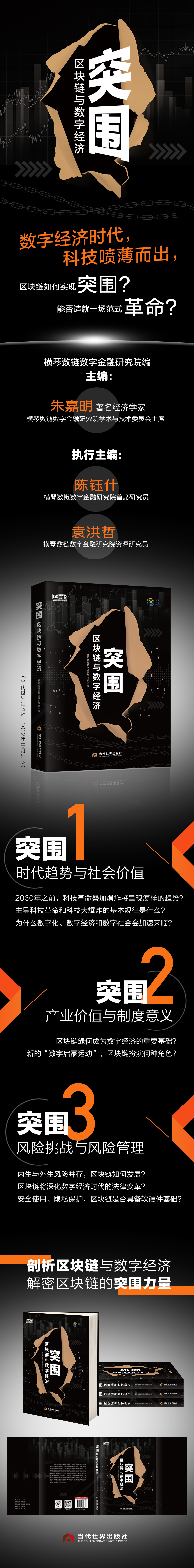 简言之,本书集合了区块链时代的经济转型、区块链的社会 价值、数字经济学、数字法学、数字安全技术、隐私增强技术、 芯片研发与算力等8个方面的论述,不同领域专家分别从自身的 研究领域出发探讨区块链的现状与未来,由宏观到微观,既总结 共性,又探索区块链如何在数字经济中实现突围的特性。