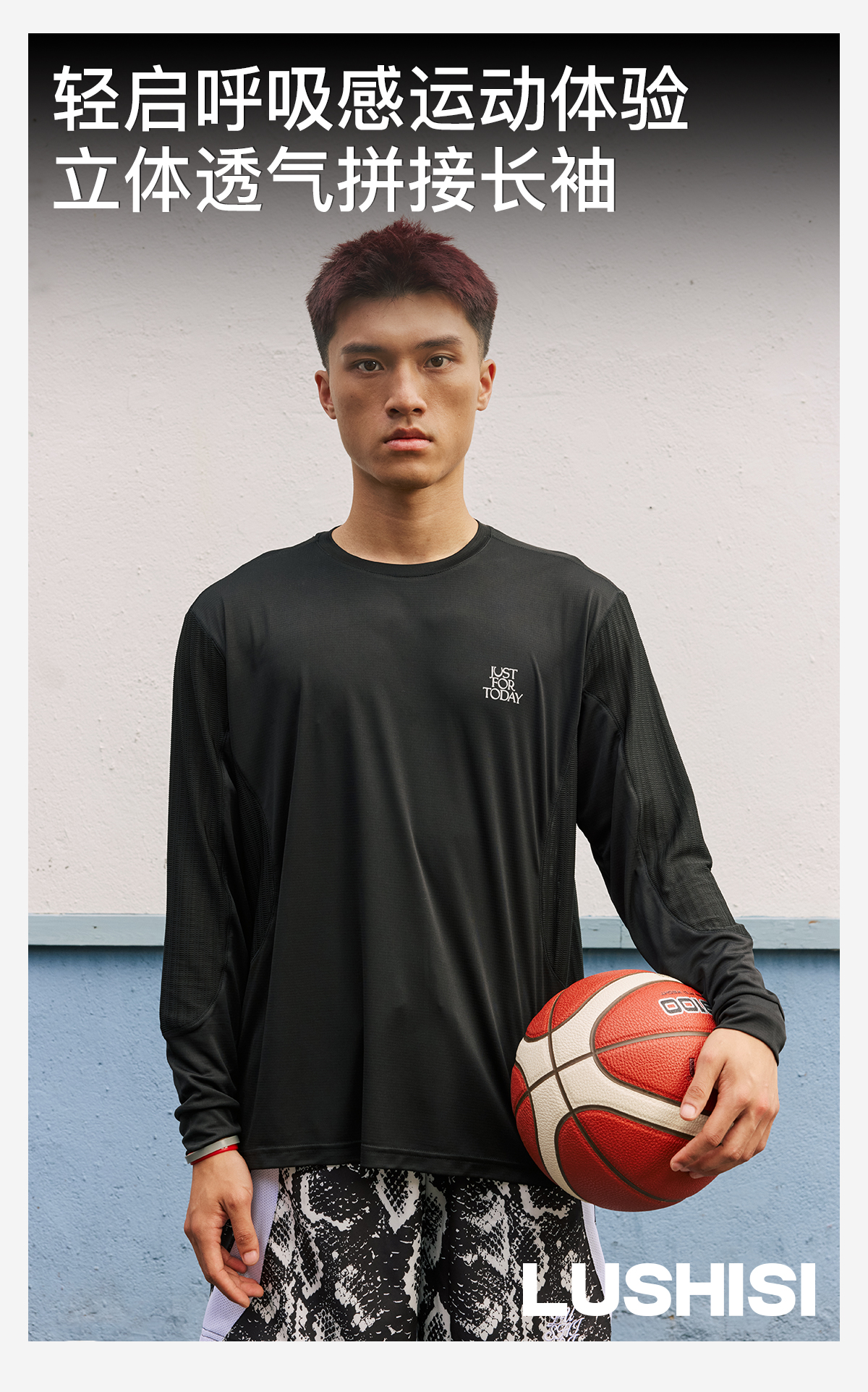 录士LUSHISI韧性主题长袖HC系列专业实战运动紧身长t恤篮球健身男