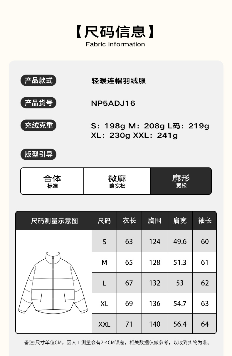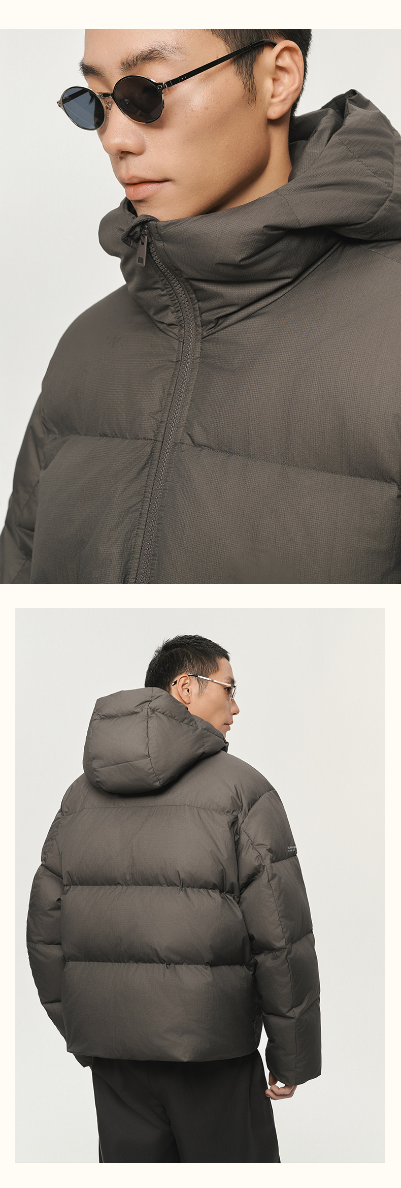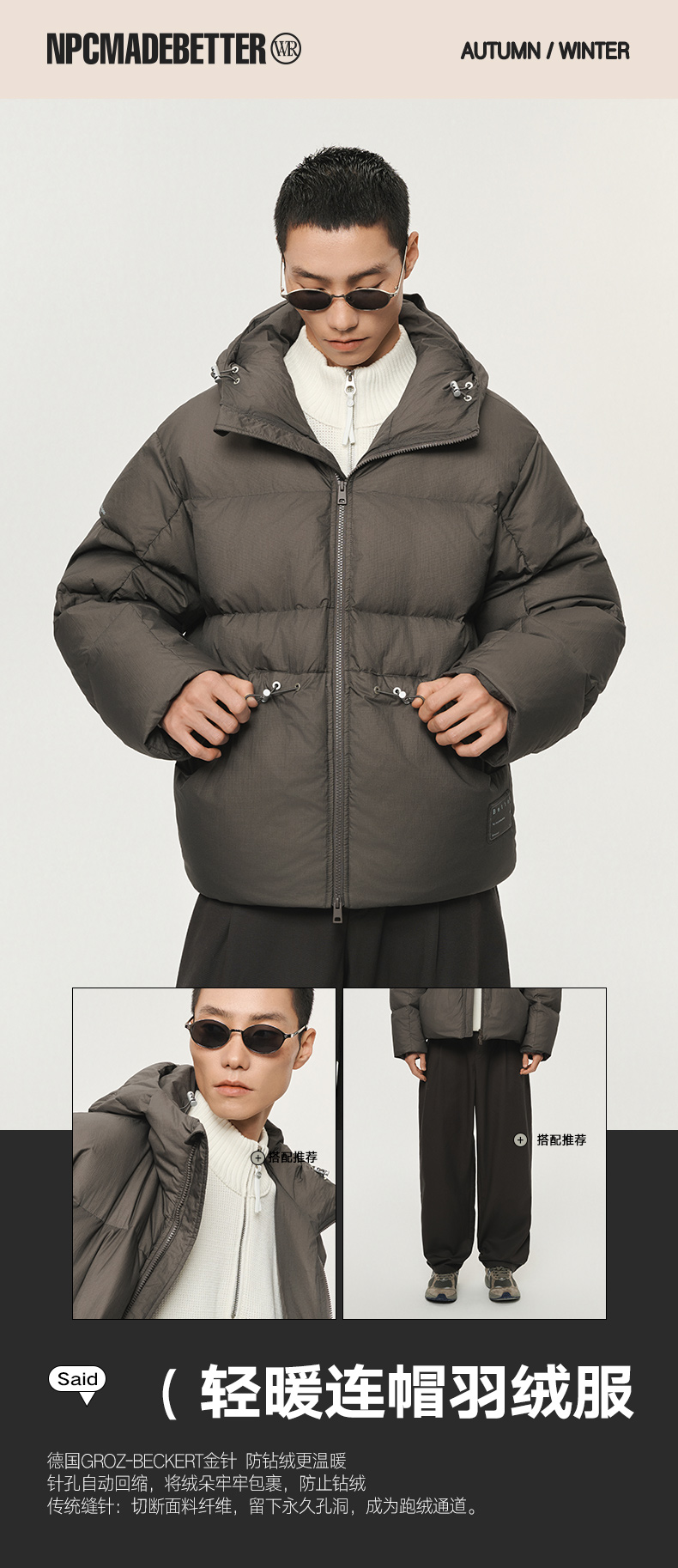 NPC潮牌90白鸭绒连帽防泼水短款羽绒服消光细格纹保暖冬NP5ADJ16