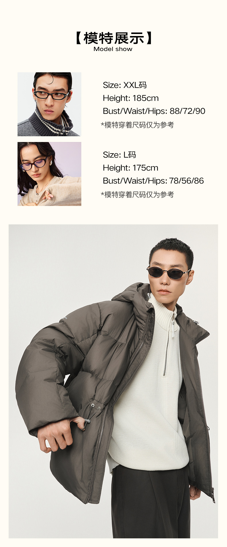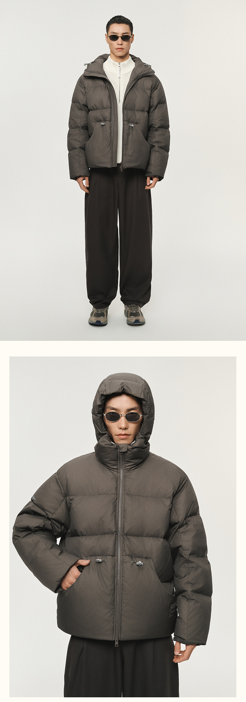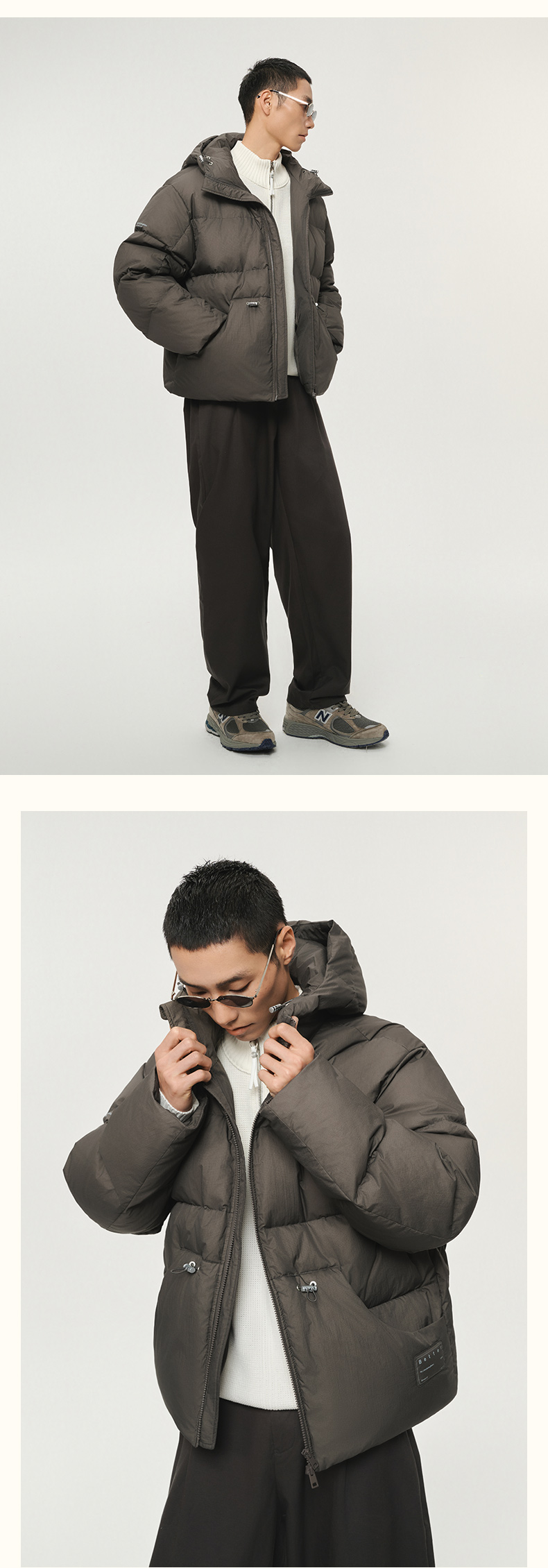 NPC潮牌90白鸭绒连帽防泼水短款羽绒服消光细格纹保暖冬NP5ADJ16