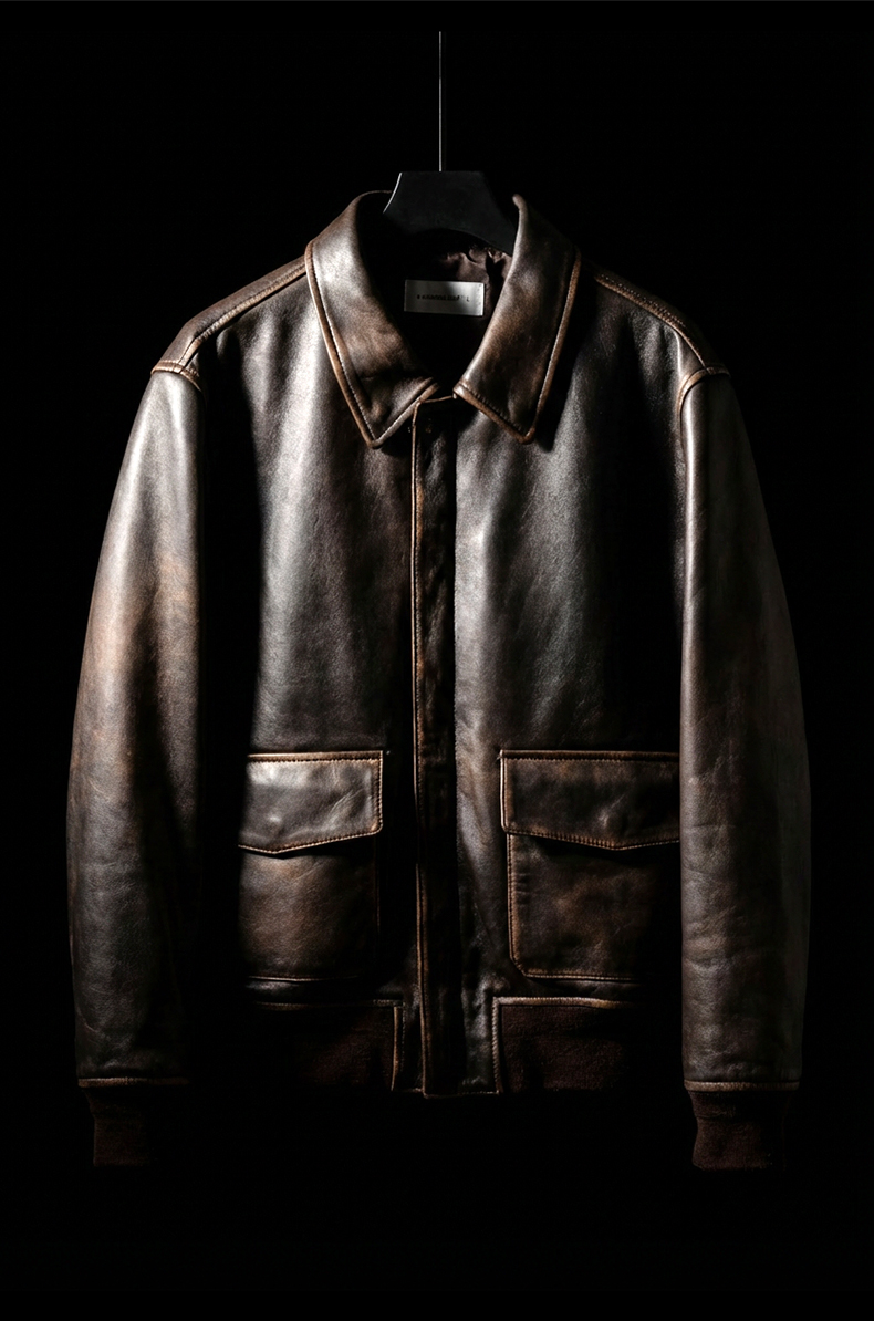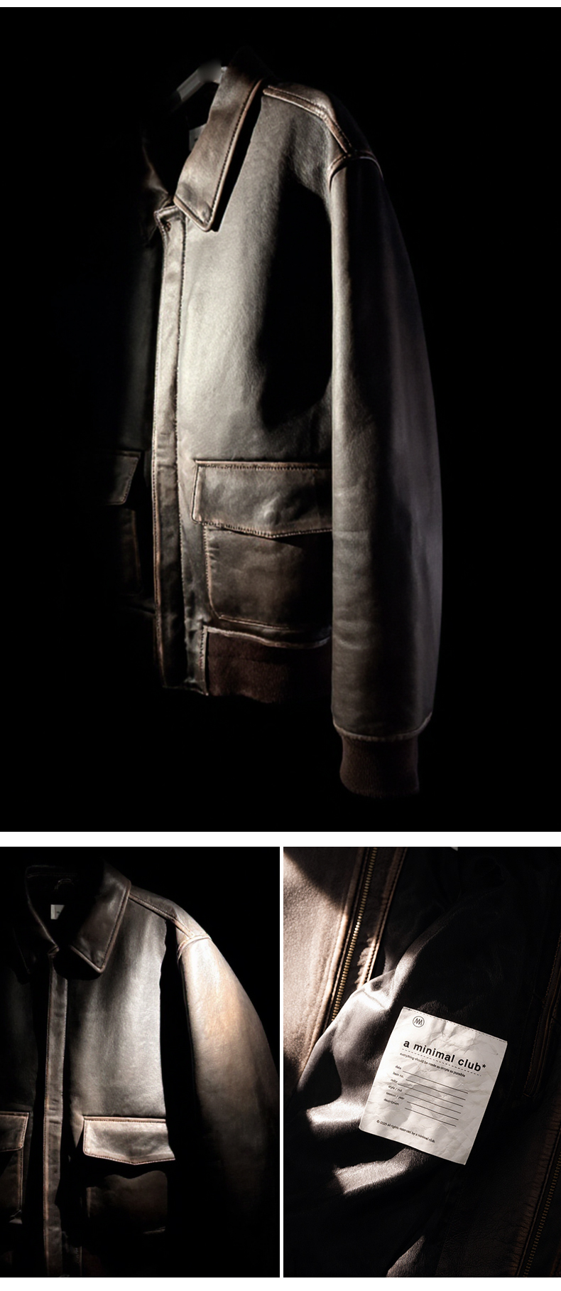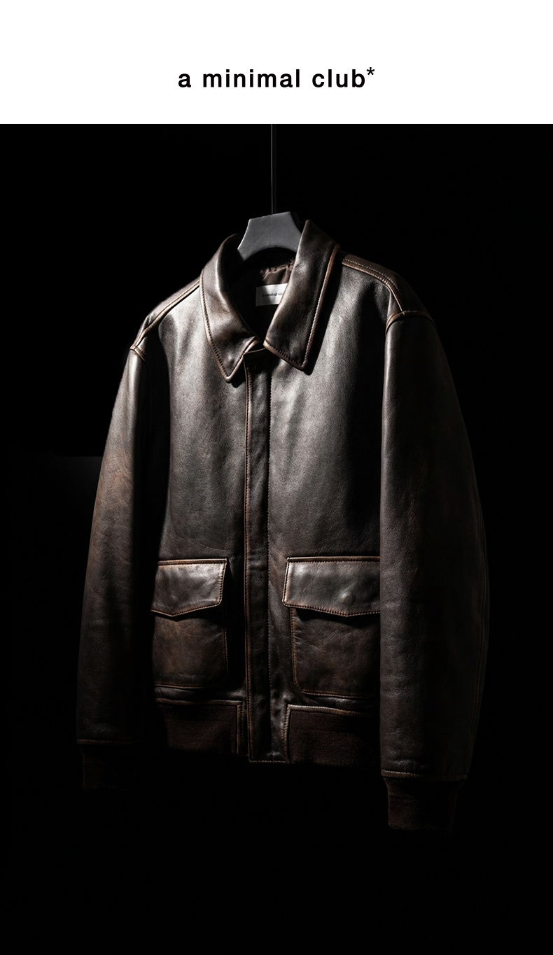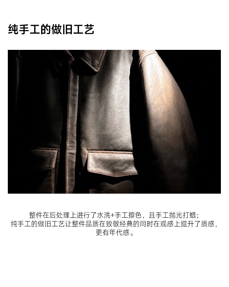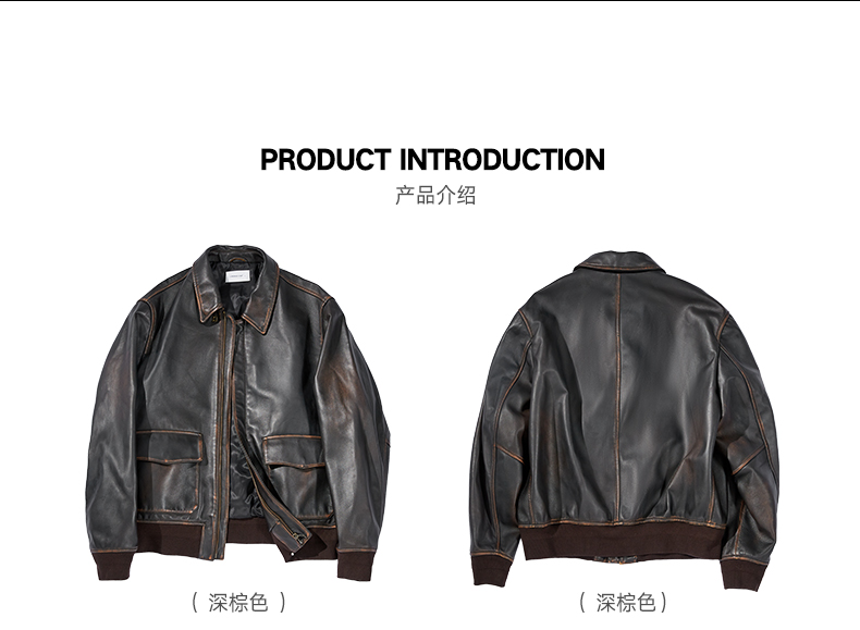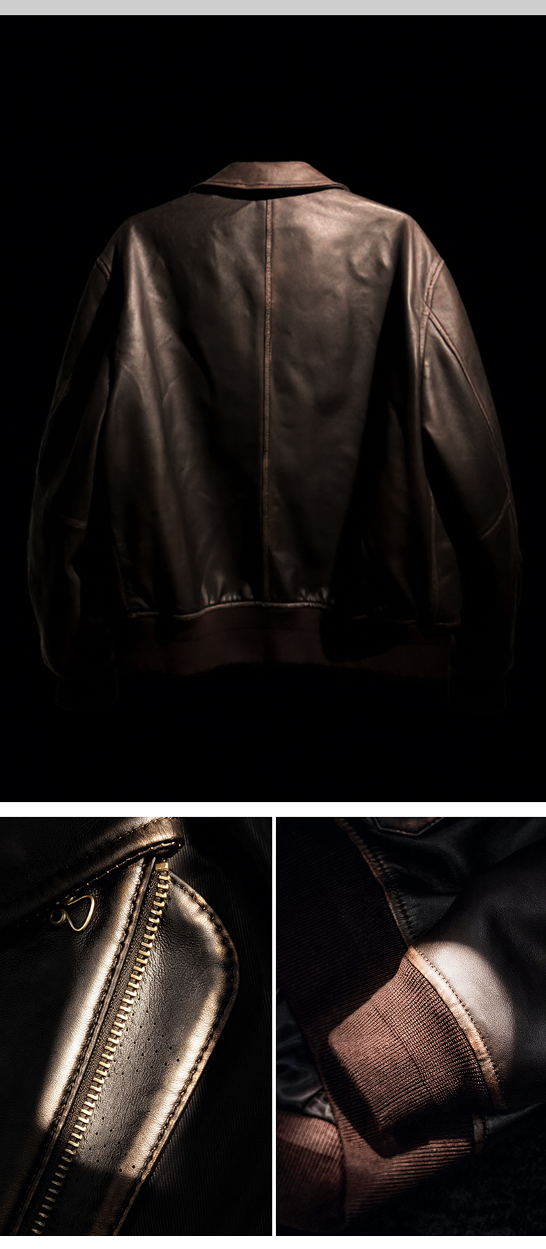 a minimal club复古美式飞行员皮衣夹克古铜定制拉链短款AM61TJ01