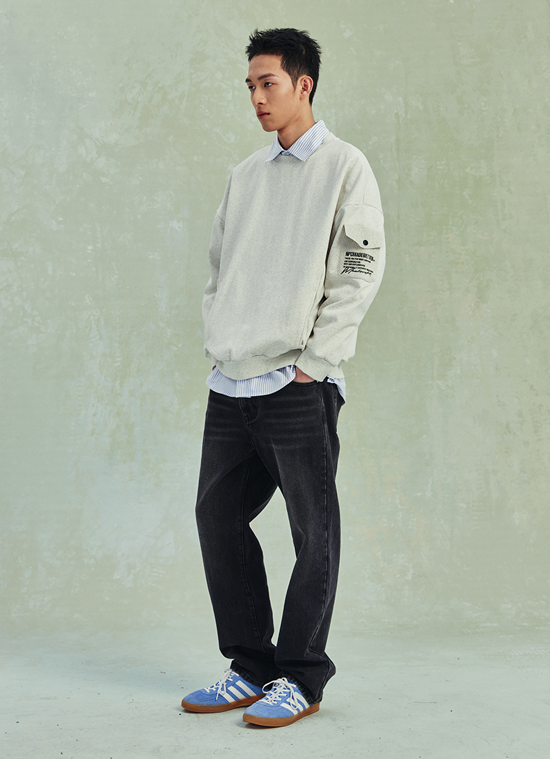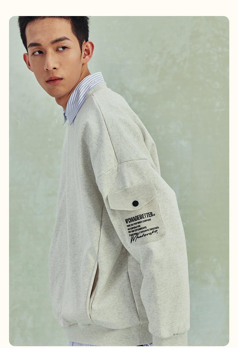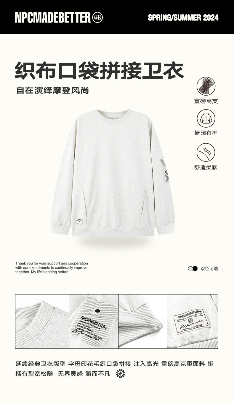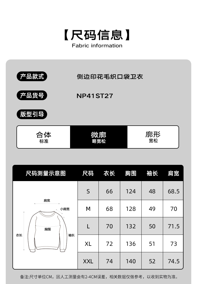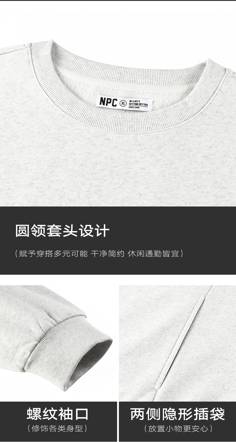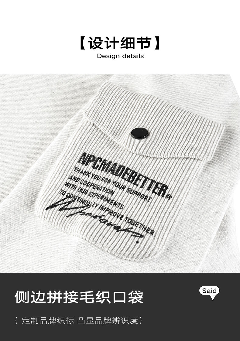 NPC潮牌高克重宽松侧边印花毛织口袋卫衣男潮流NP41ST27