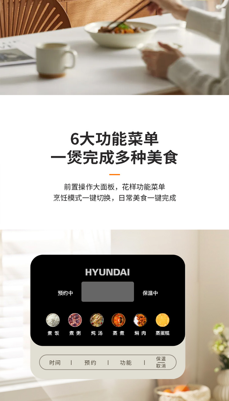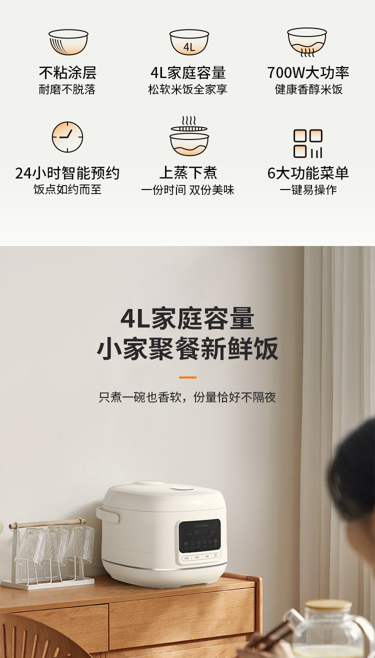 现代(HYUNDAI)FD407-2404E智能电饭煲4L 白色