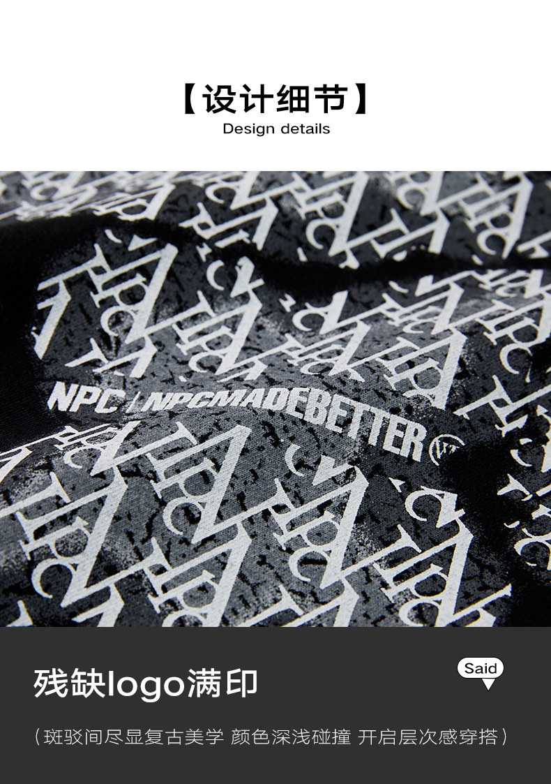 NPC潮牌不对称做旧斑驳满印字母logo圆领卫衣重磅长袖NP41ST23