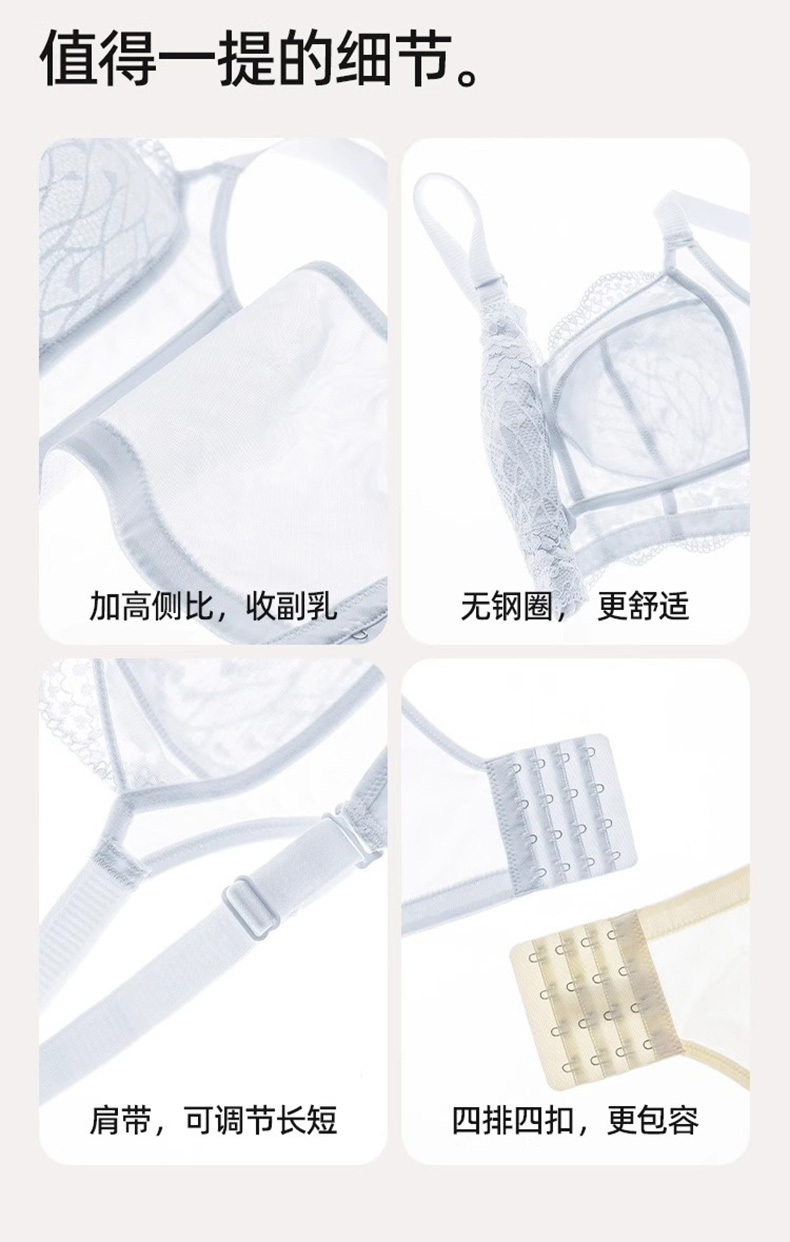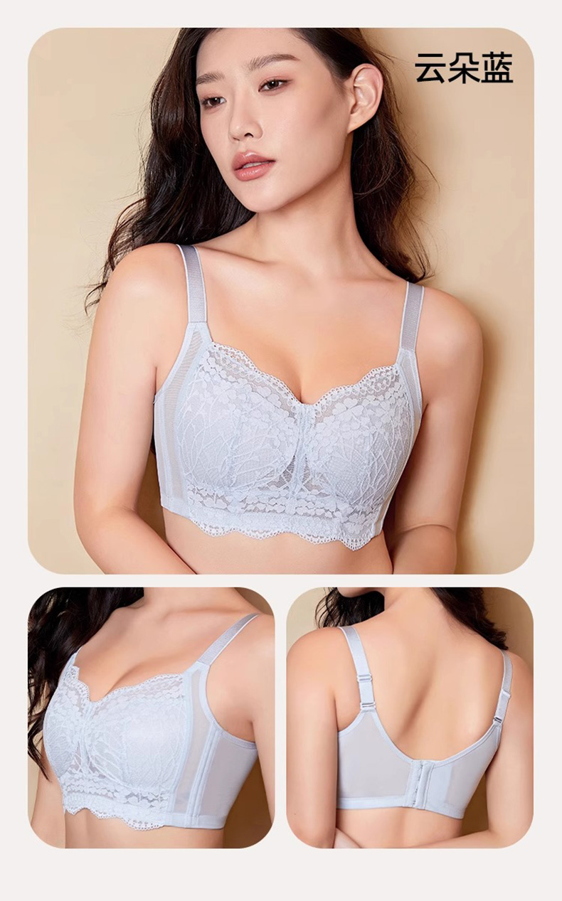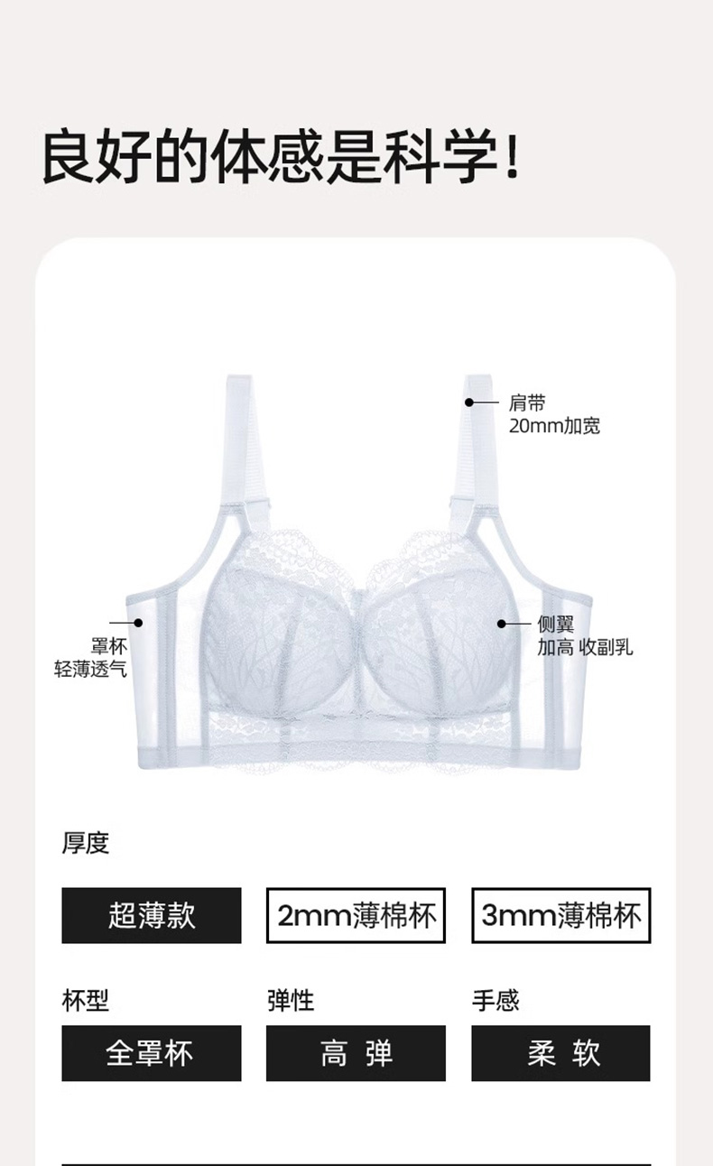 D2-【B-E杯】【大胸显小】润微超薄透气大胸显小全罩杯舒适显小调整型内衣不凸点收副乳文胸 花融啵啵