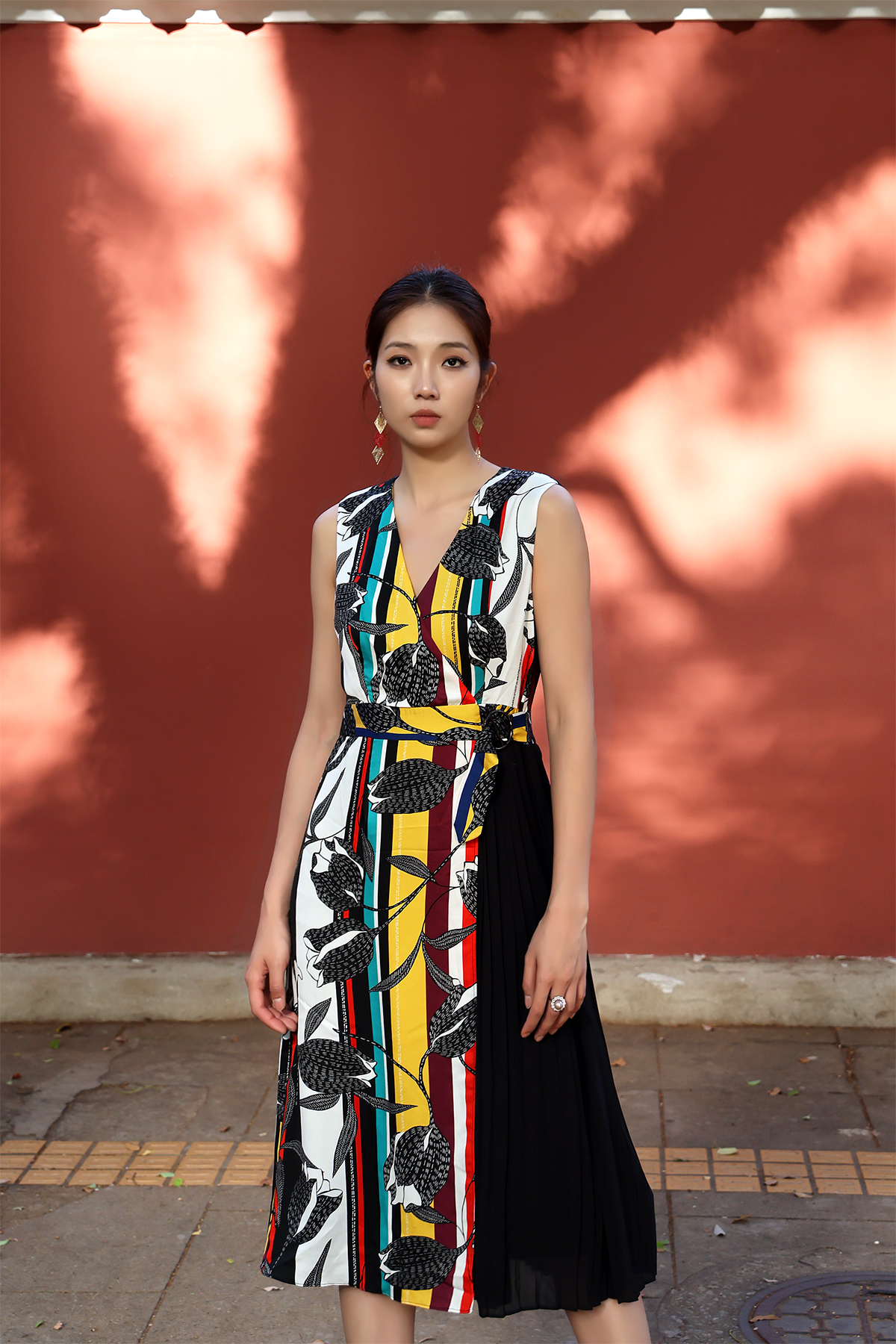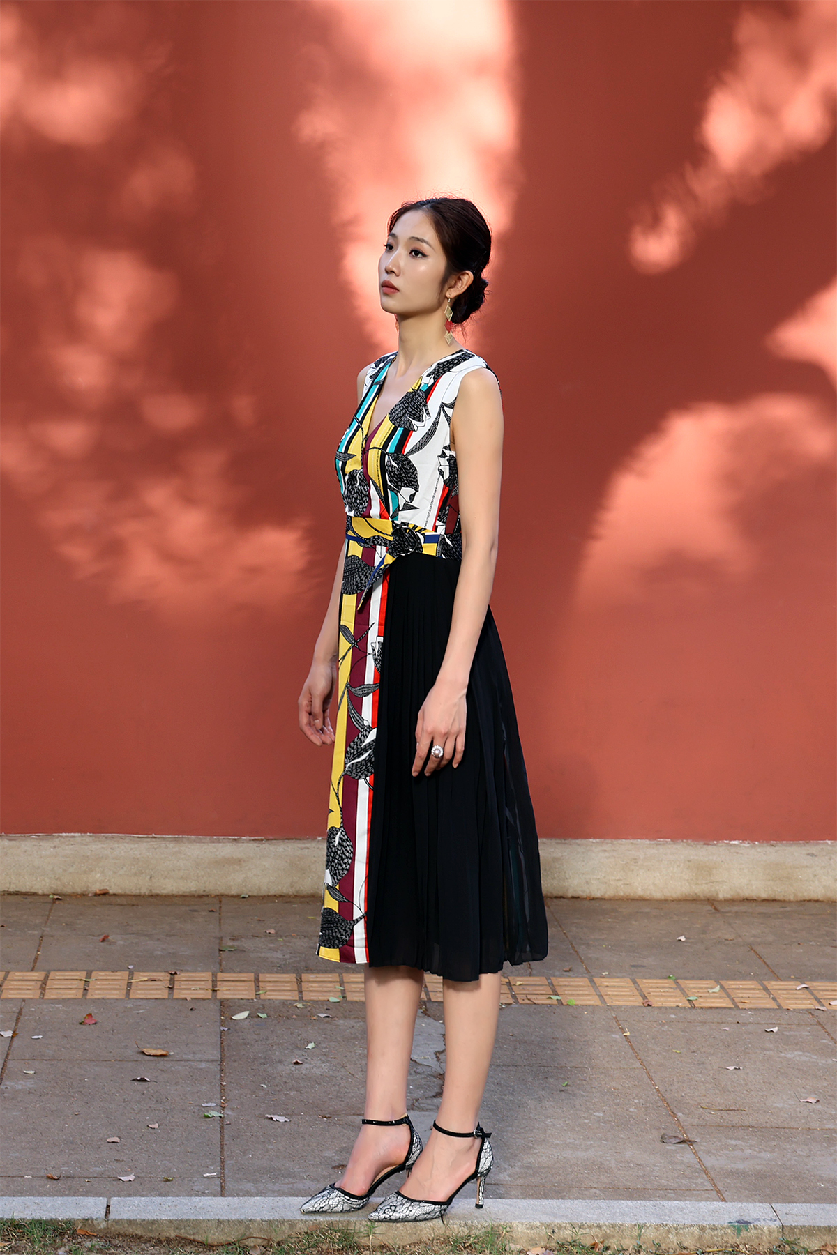 采用分层提色数码还原及立体叠折技法,将艺术品中鲜浓的花岗橙的炫丽、精细木雕的细腻优美感有机的融入服装,将1200年前的艺术价值完整呈现给大众。