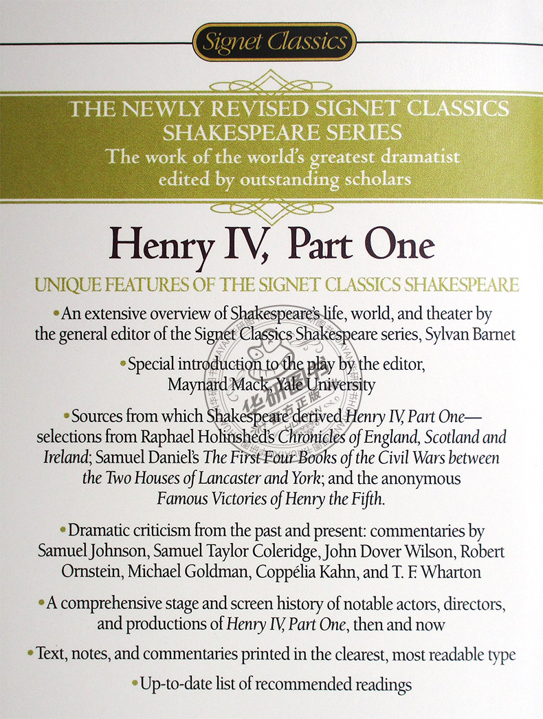 本套装共包括两本,为Signet Classics推出的英文原版修订版,对莎士比亚生平作了介绍,同时提供序言、评论、注释等。内容完整无删减,书本小巧便携,适合英语学习者及对经典英国文学作品、莎士比亚系列作品感兴趣的读者。