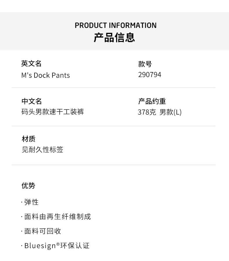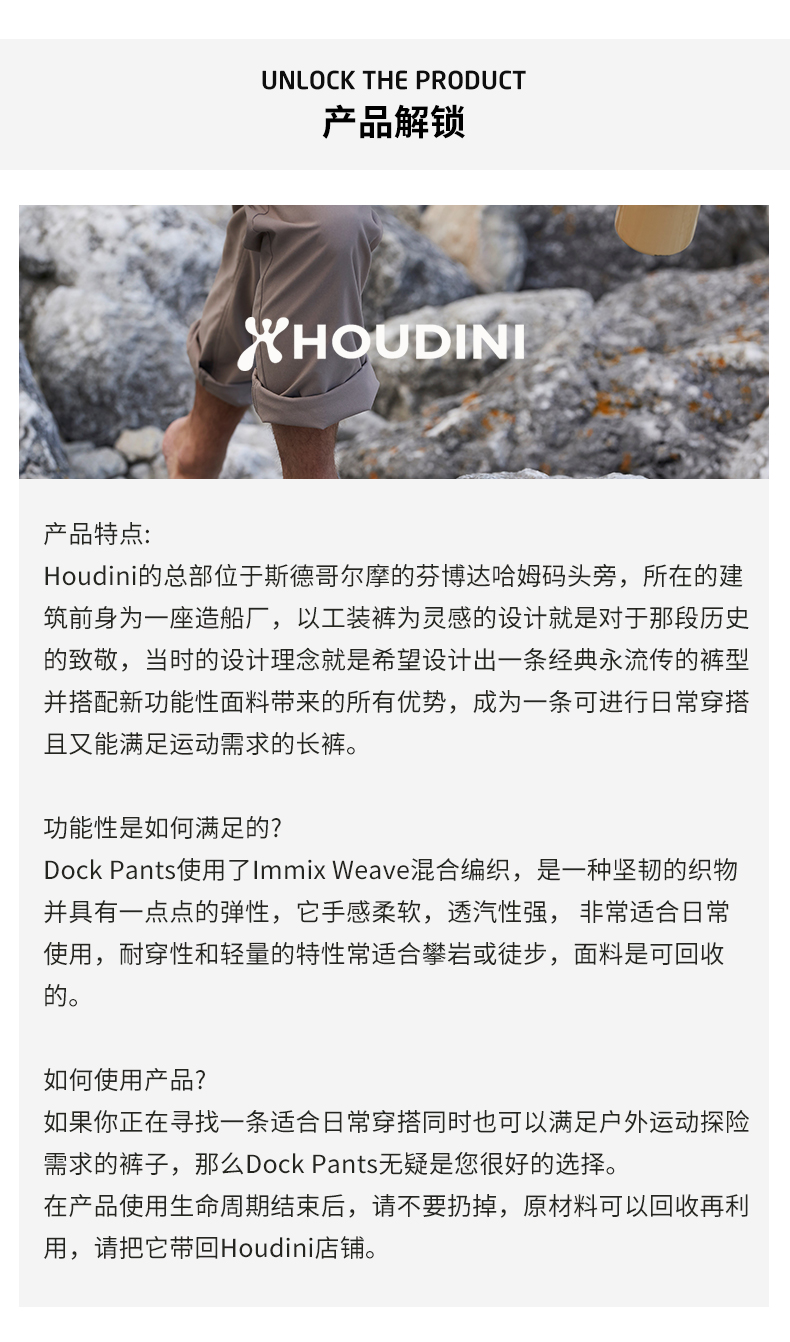 HOUDINI胡丁尼 Dock 码头户外男款休闲长裤290794