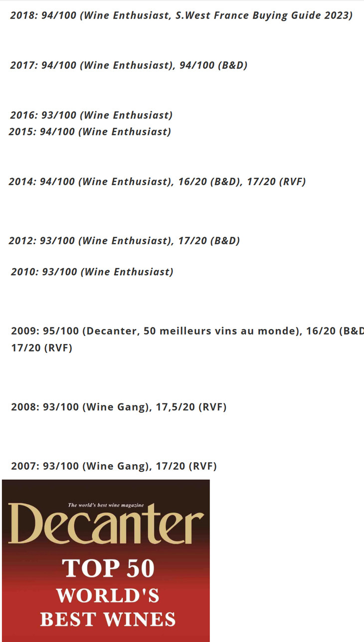 香贝古堡:获 190 多个奖牌,被 B&D 杂志评为“年度酒庄”,被 Decanter 评为“全球 50 大葡萄酒之一”;
