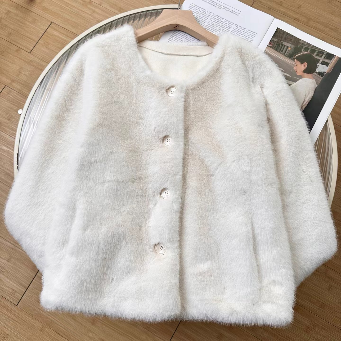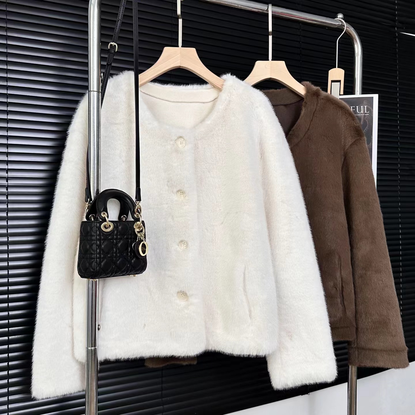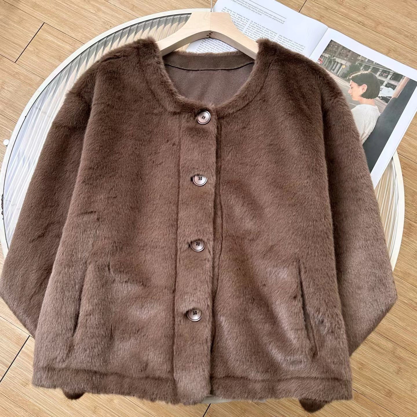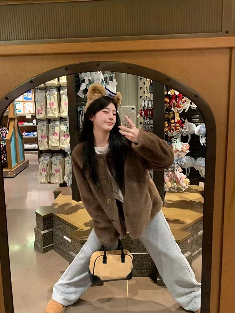 冬季新款奶里奶气很好rua仿貂毛环保皮草毛毛外套 冬日软fufu云朵仿貂毛外套~慵懒版型,衣长恰好在腰胯之间,既能悄悄拉高腰线,又不会压个子;圆领的设计,不挑脸型,还可以叠搭各种针织衫在里面增加层次感。落肩袖的设计弱化了肩线的生硬,哪怕是溜肩、窄肩,也能穿出自带直角肩的舒展轮廓,抬手间全是不费力的松弛。醉戳人的是面料细节:选用高密度仿貂毛材质,摸上去是软fufu的,很好run,绒感蓬松却不臃肿,像裹了层会呼吸的暖雾;表面的毛流感细腻到根根分明,没有廉价的粗糙感,凑近看是自带柔光的糕级哑光质感,灯光下泛着温柔的绒面光泽,显贵却不张扬。仿貂毛的锁温性堪比小毛毯,哪怕是零下几度的天气,单穿它+一件薄针织衫,也能抗住户外的冷风;但它又不像传统厚重外套那样显臃肿,秋冬穿很好看!