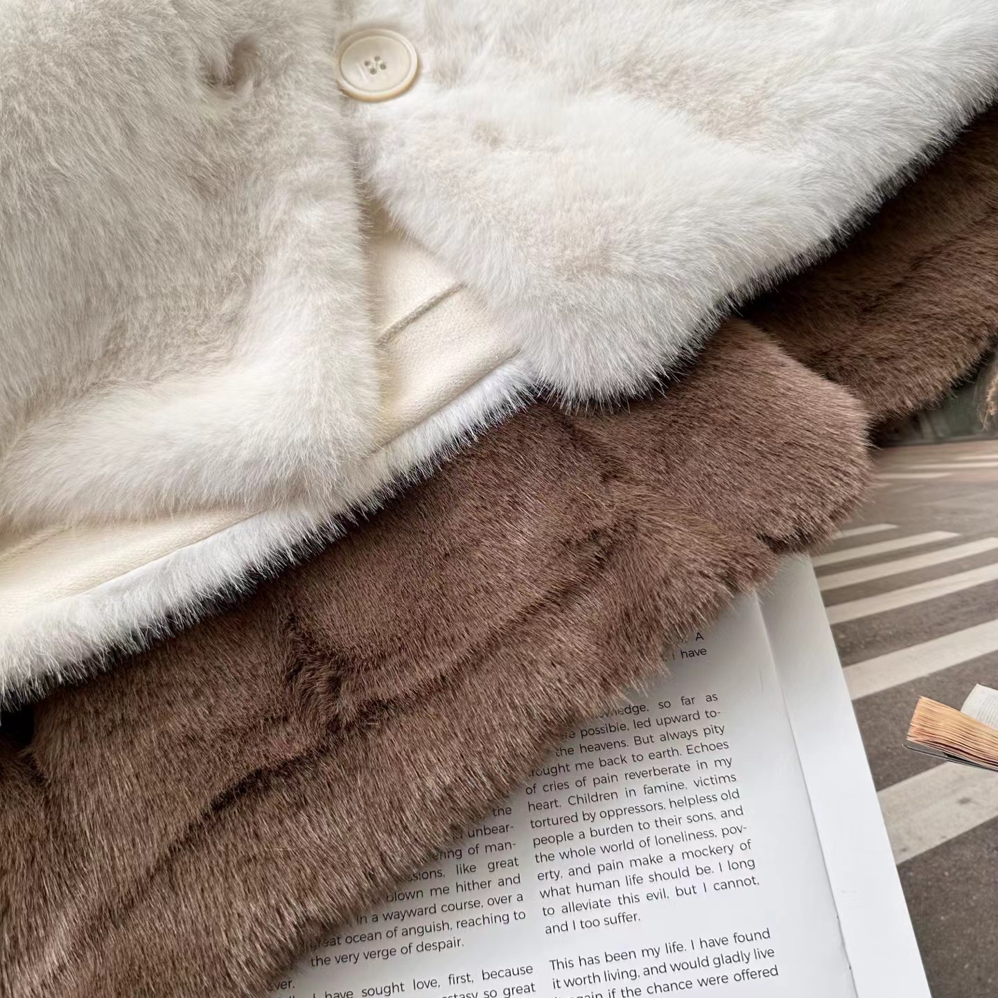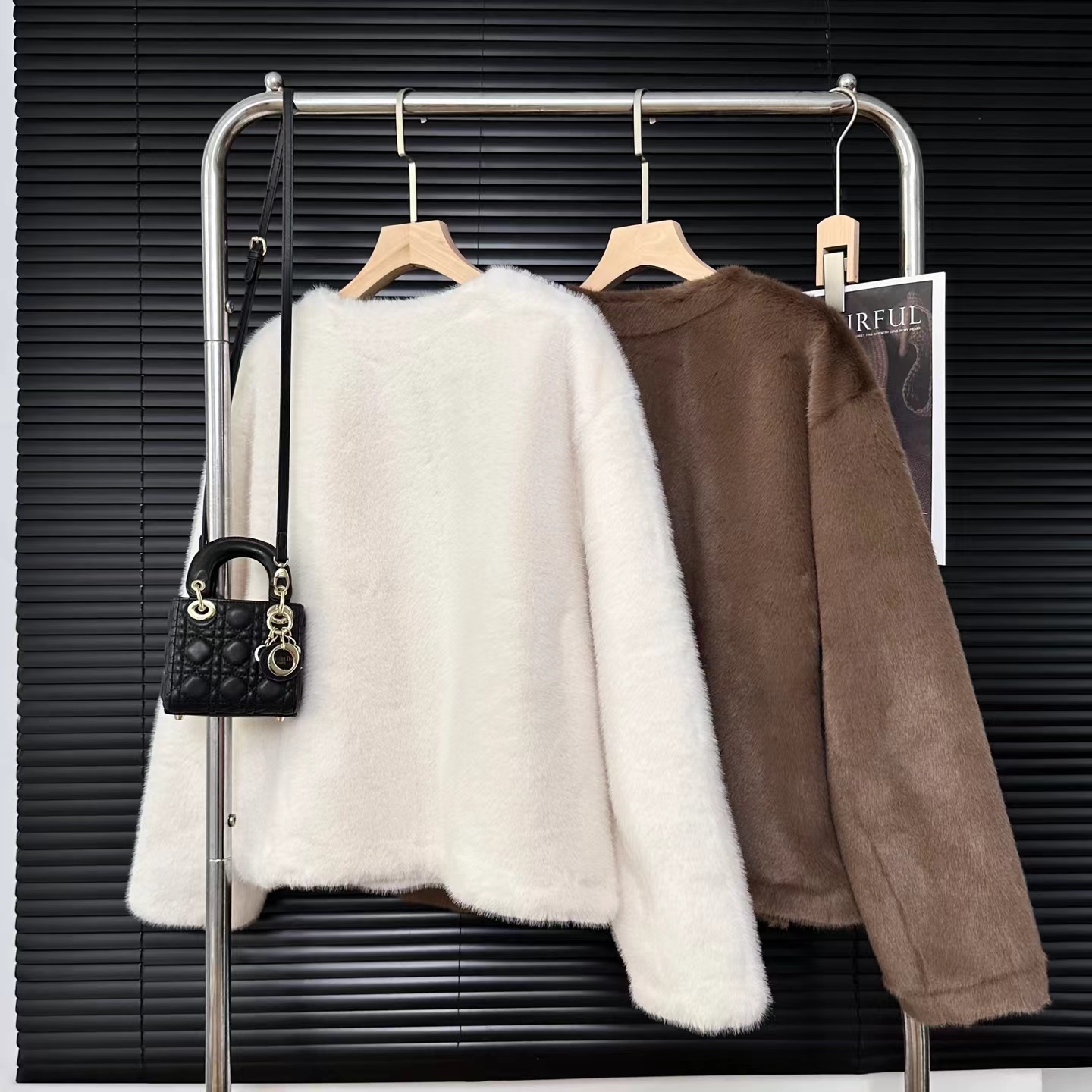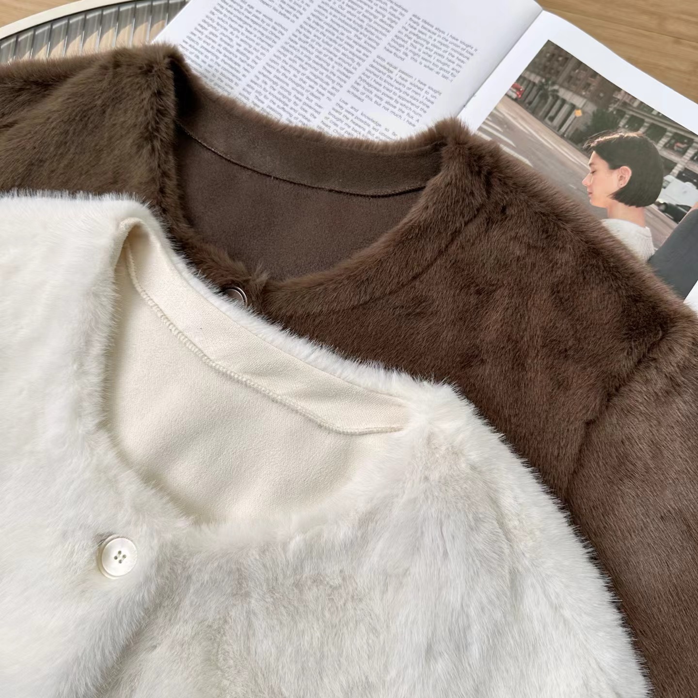 冬季新款奶里奶气很好rua仿貂毛环保皮草毛毛外套 冬日软fufu云朵仿貂毛外套~慵懒版型,衣长恰好在腰胯之间,既能悄悄拉高腰线,又不会压个子;圆领的设计,不挑脸型,还可以叠搭各种针织衫在里面增加层次感。落肩袖的设计弱化了肩线的生硬,哪怕是溜肩、窄肩,也能穿出自带直角肩的舒展轮廓,抬手间全是不费力的松弛。醉戳人的是面料细节:选用高密度仿貂毛材质,摸上去是软fufu的,很好run,绒感蓬松却不臃肿,像裹了层会呼吸的暖雾;表面的毛流感细腻到根根分明,没有廉价的粗糙感,凑近看是自带柔光的糕级哑光质感,灯光下泛着温柔的绒面光泽,显贵却不张扬。仿貂毛的锁温性堪比小毛毯,哪怕是零下几度的天气,单穿它+一件薄针织衫,也能抗住户外的冷风;但它又不像传统厚重外套那样显臃肿,秋冬穿很好看!