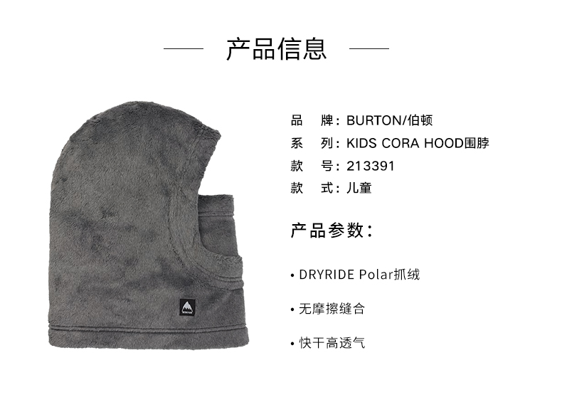 【断码六折】 BURTON/伯顿儿童滑雪护脸面罩围脖头套保暖防风柔软单板滑雪护具204891