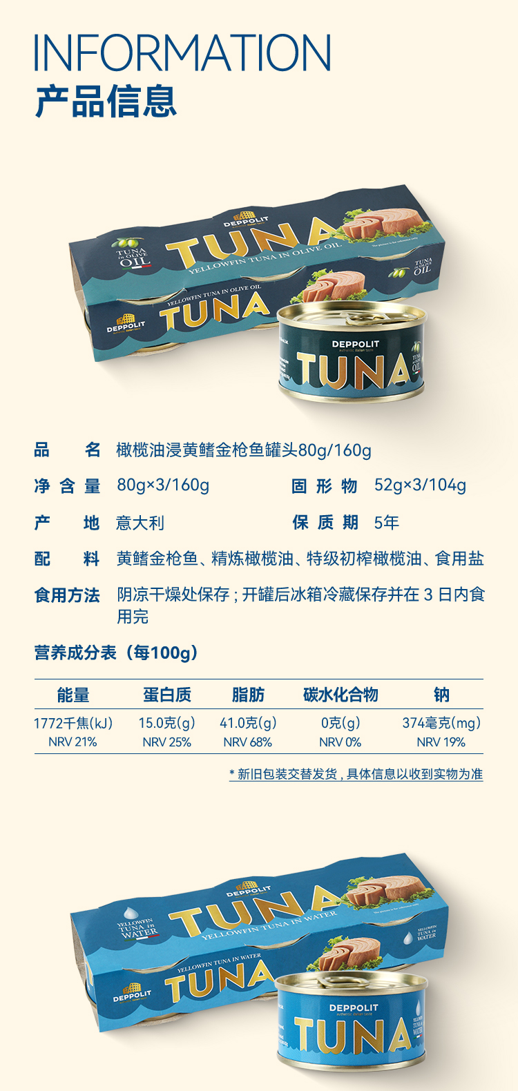 黄鳍金枪鱼罐头 葵花籽油/橄榄油/水浸 无添加剂 意大利进口 (中通发货)