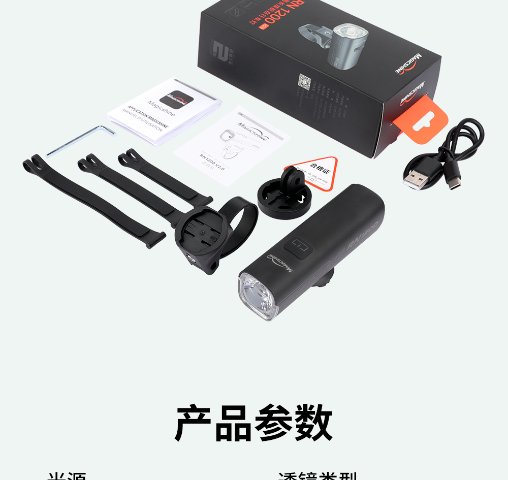 迈极炫RN1200自行车前灯充电强光山地车夜骑灯充放一体车灯防炫光