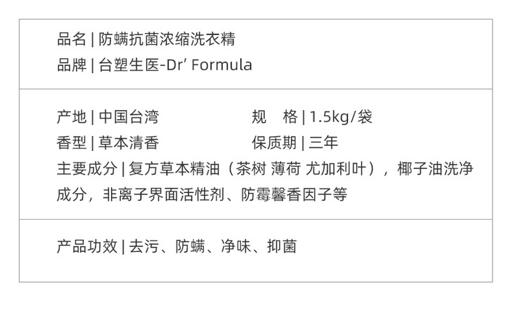 台塑生医防螨抗菌洗衣精(补充装 易好