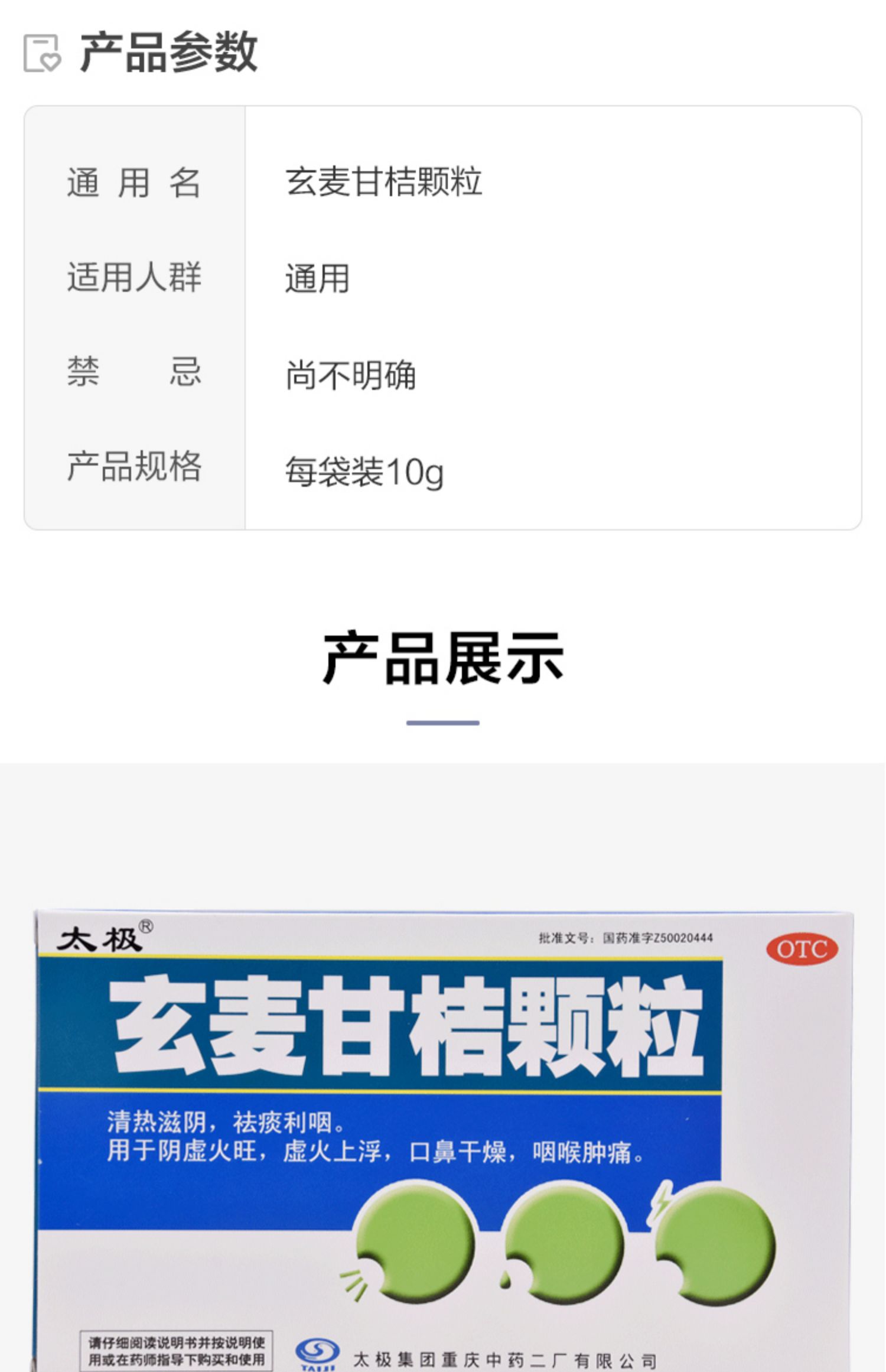太极玄麦甘桔颗粒10袋祛痰利咽阴虚火旺咽喉红肿痛降火下火药