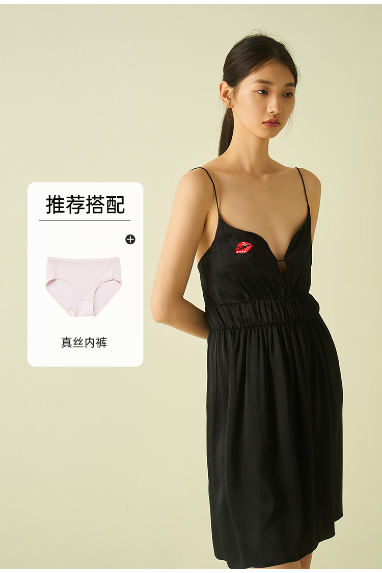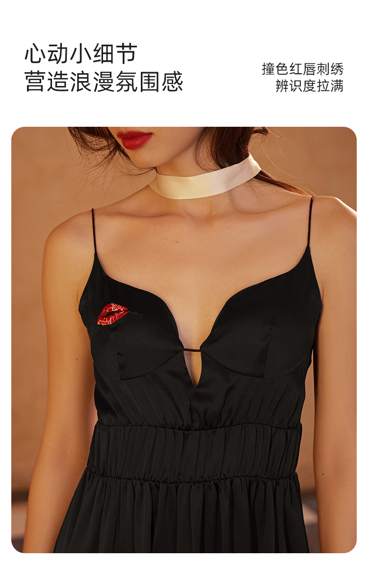 璀璨】桑罗吊带裙睡裙吻系列新款红唇刺绣情侣睡衣女可外穿