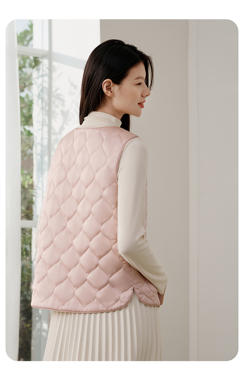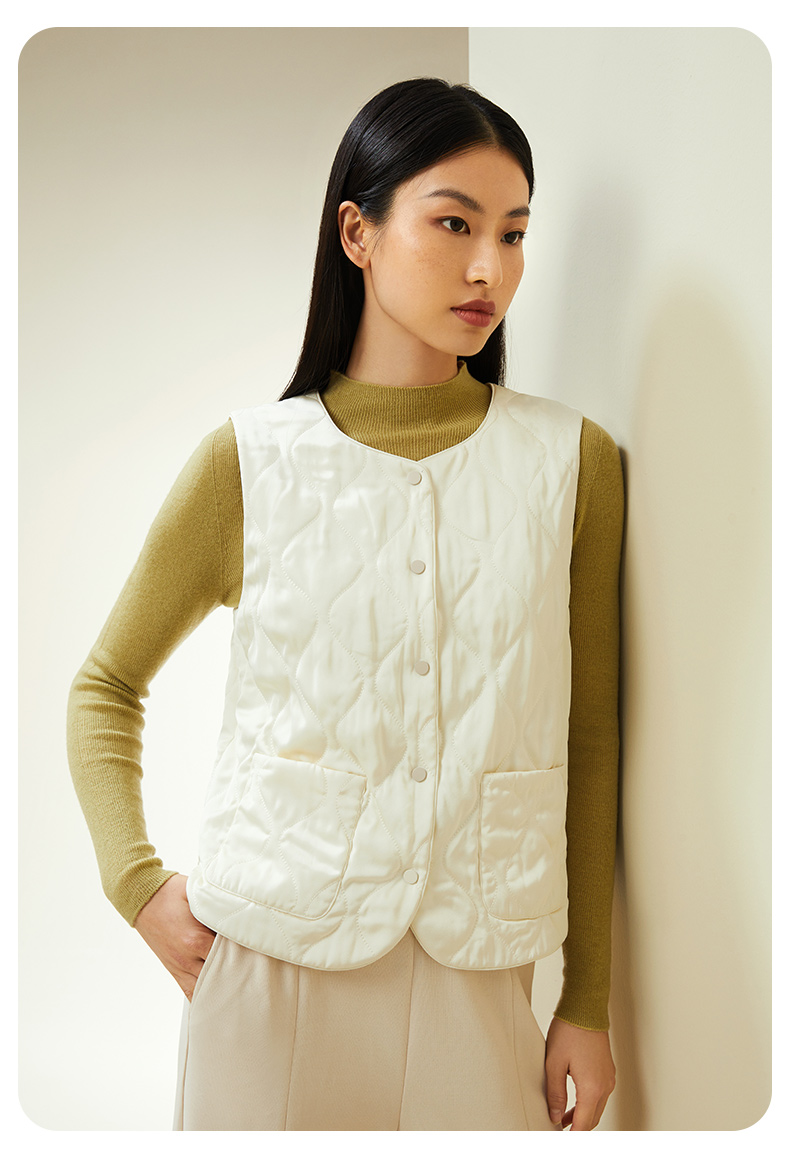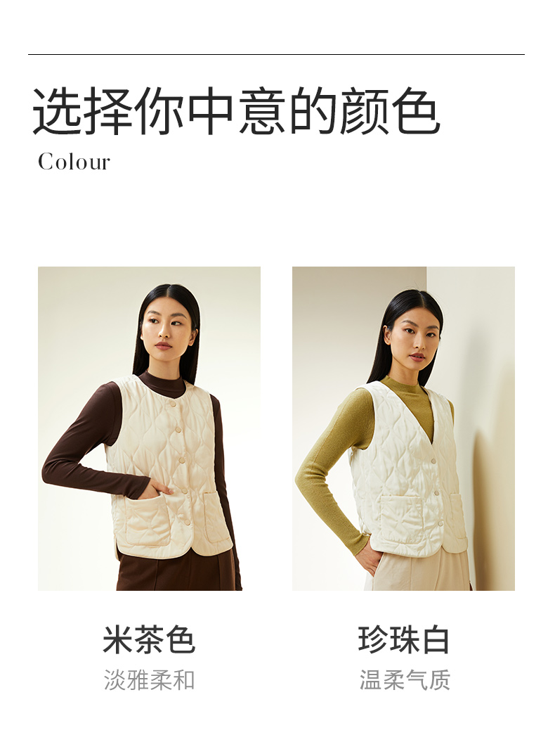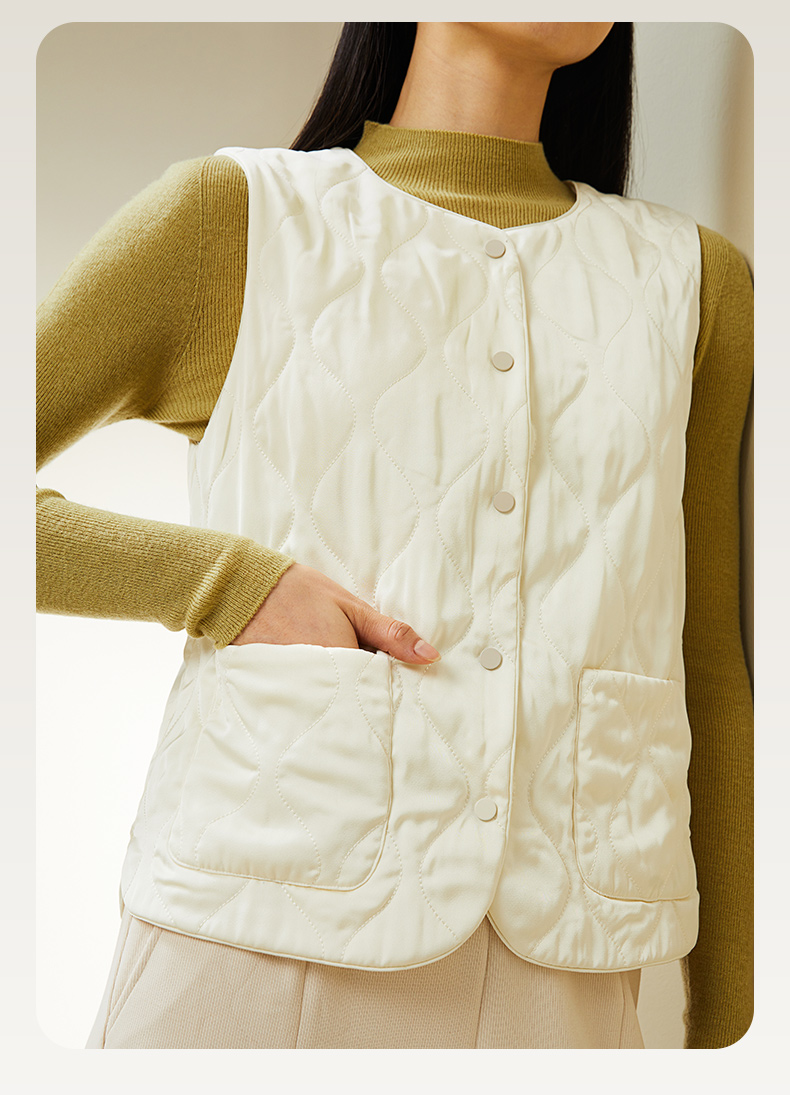 金三塔桑蚕丝填充保暖背心女秋冬新品无袖V领圆领可外穿棉袄马甲(限价款) NSFDD730