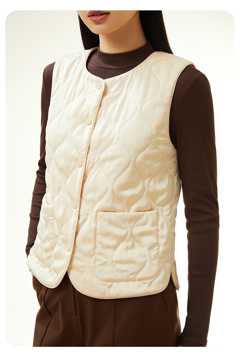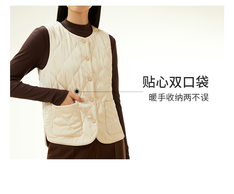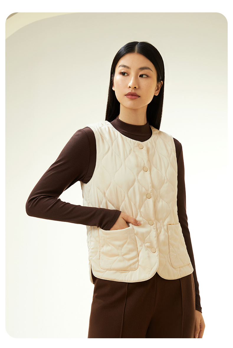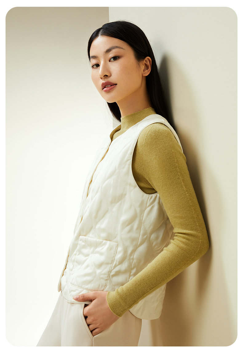 金三塔桑蚕丝填充保暖背心女秋冬新品无袖V领圆领可外穿棉袄马甲(限价款) NSFDD730