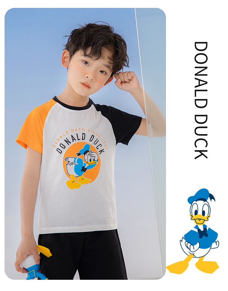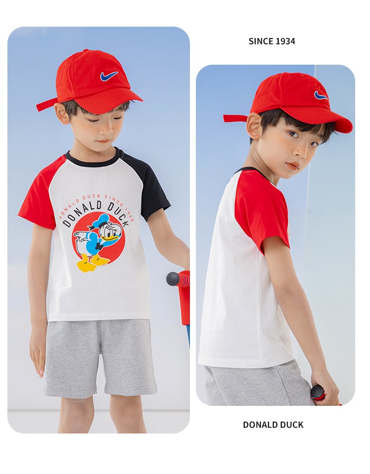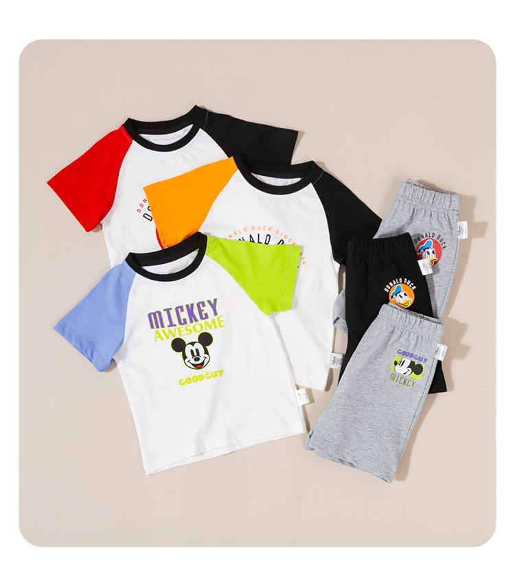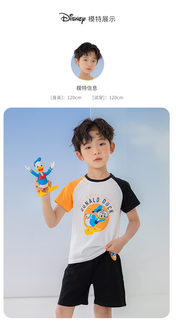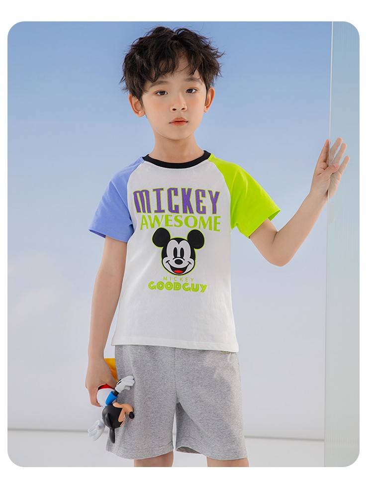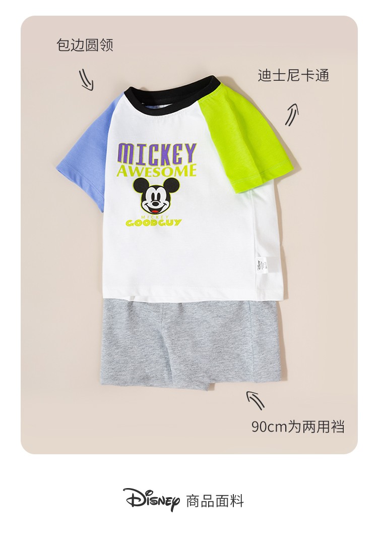 迪士尼童装夏季新品男童撞色短袖短裤套装男宝两件套