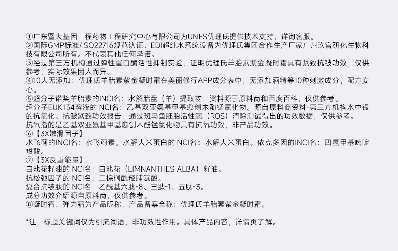 【淡纹紧致】优理氏羊胎素紫金凝时霜 紫金抚纹 御龄 凝时 淡纹减少皱纹 紧致肌肤 弹润肌底 减少肌肤氧化暗沉