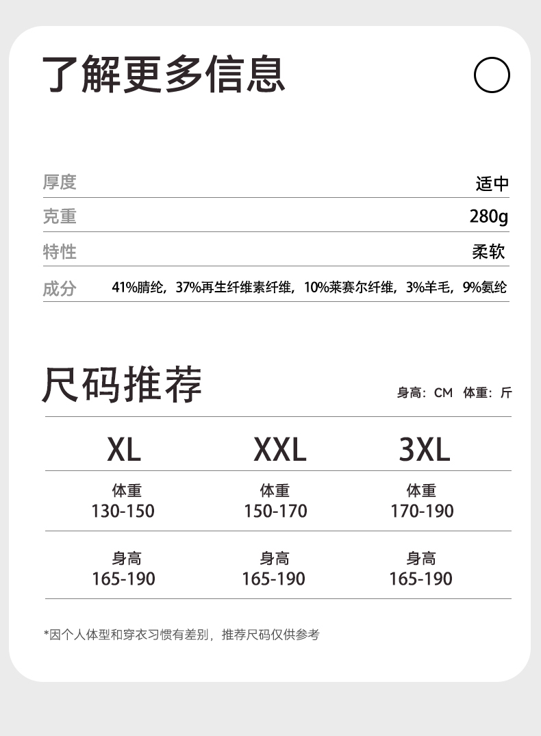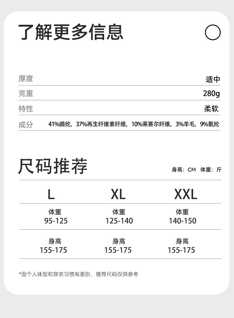 [材质]41%腈纶,37%再生纤维素纤维,10%莱赛尔纤维,3%羊毛,9%氨纶