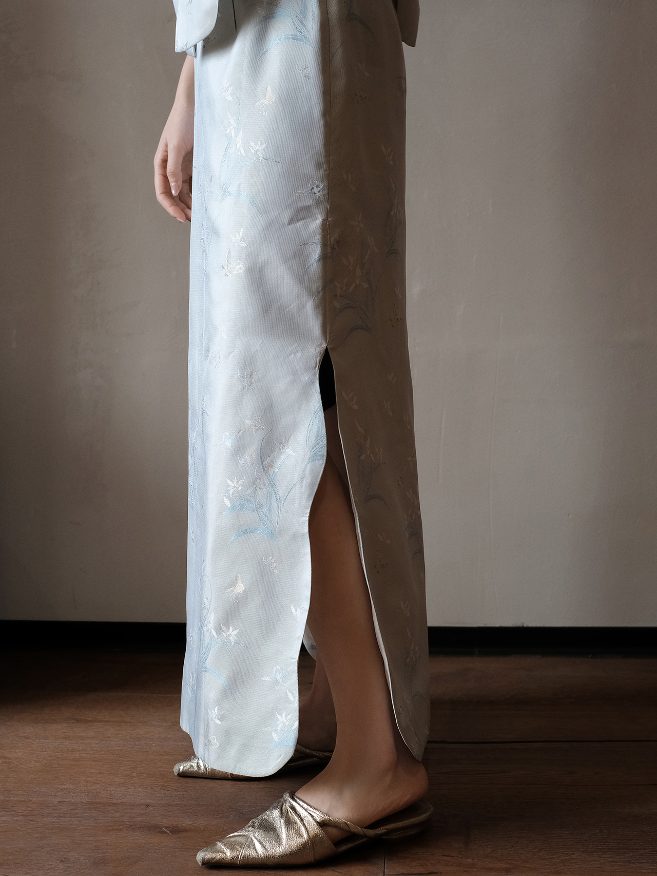 盛唐牡丹 | 兰花纹真丝异色罗半裙